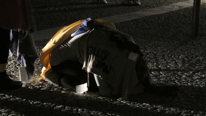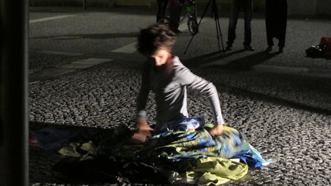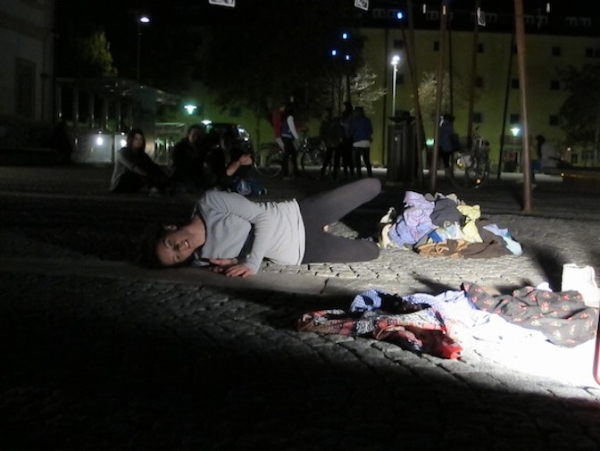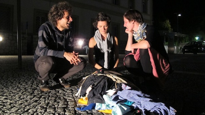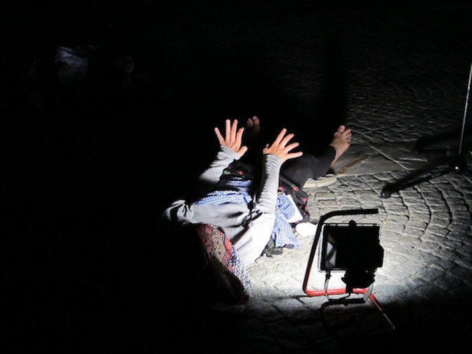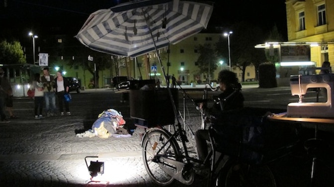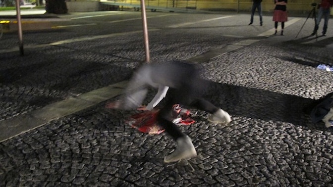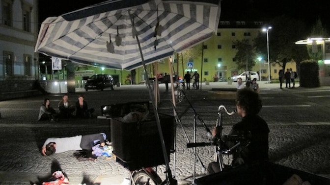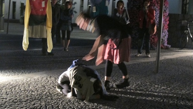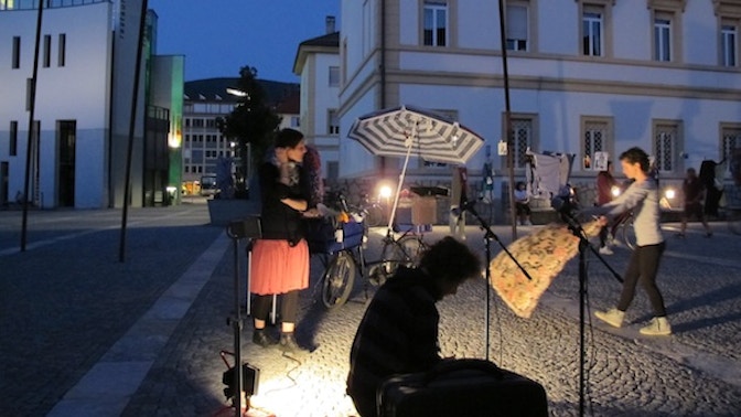 Eine Sound-Körperimprovisation mit Katharina Schwärzer und Daniel Moser auf dem Rathausplatz in Bruneck.
