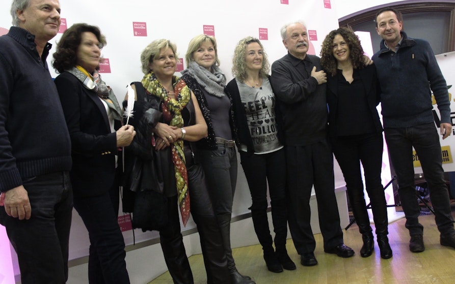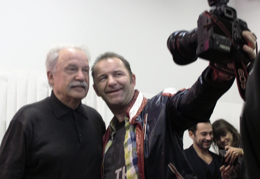 Genau so wie oben im Titel begrüßte er am 23.11.2013 um 23.30 Uhr die randvoll mit Menschen gefüllte Halle E im Museumsquartier in Wien: Giorgio Moroder, stand im Rahmen des Electronic Beats Festivals neben Laurel Halo, When Saints Go Machine, Metro Area und Wolfram auf der Bühne. Die Halle bebte, das Publikum schwebte zu alten und neuen Melodien des großen Meisters – wie ihn auch während der Walk-of-Stars-Zeremonie bzw. des Meet&Greet-Fantreffens vor dem Konzert die wenigen Auserwählten nannten, die zugegen sein durften. Das Konzert des Grödner Produzenten und Komponisten ließ sich auch der Bürgermeister von St. Ulrich nicht entgehen. Natürlich war auch Giorgios Frau da, jede Menge Südtirolerinnen und Südtiroler und weitere Tausende begeisterte Disco-Menschen. Ich habe euch ein paar Schnappschüsse aus Wien mitgebracht. Genießt sie!