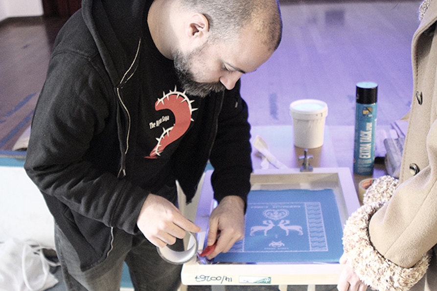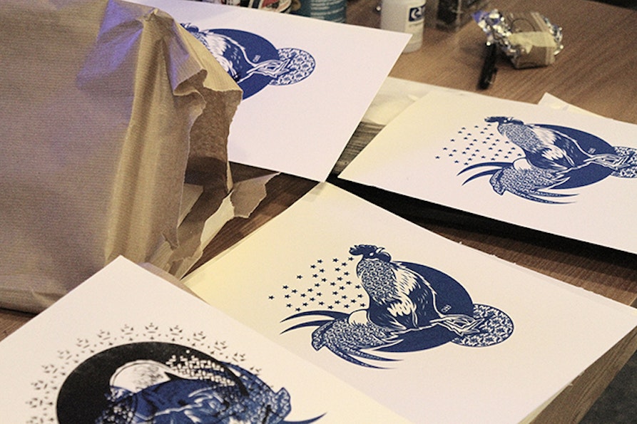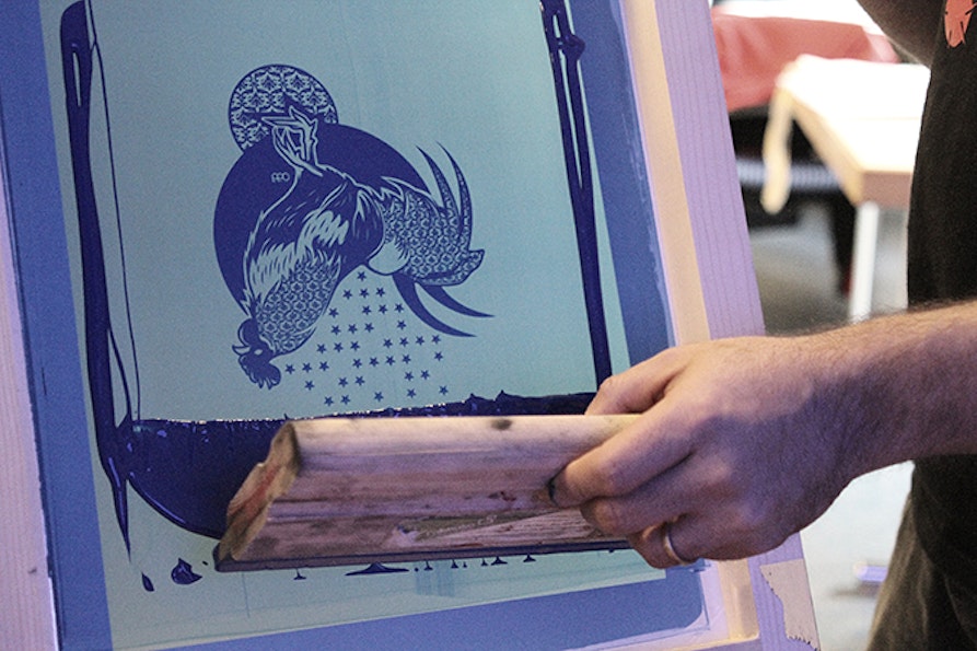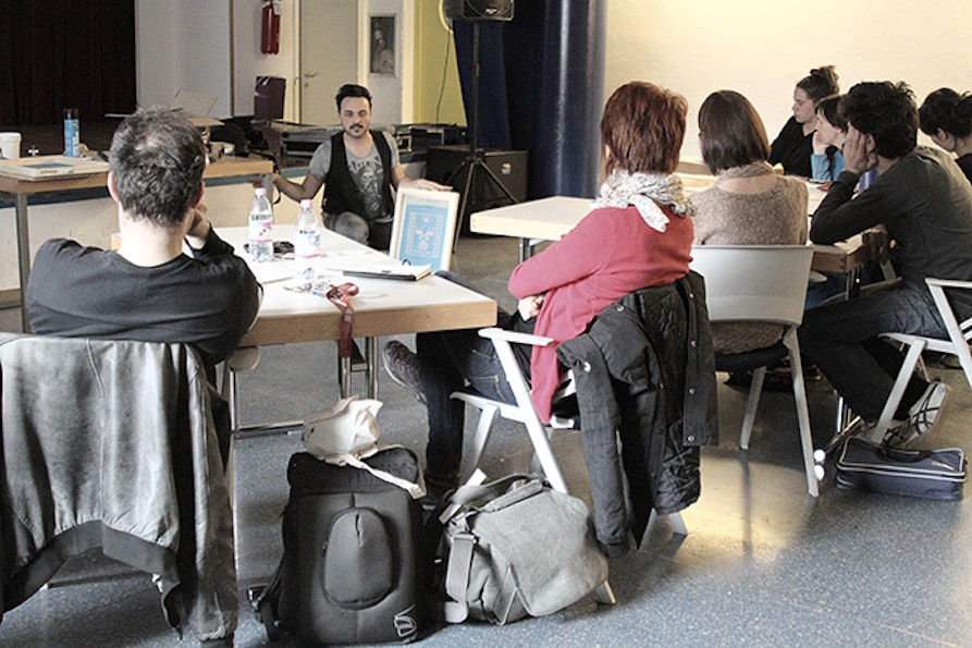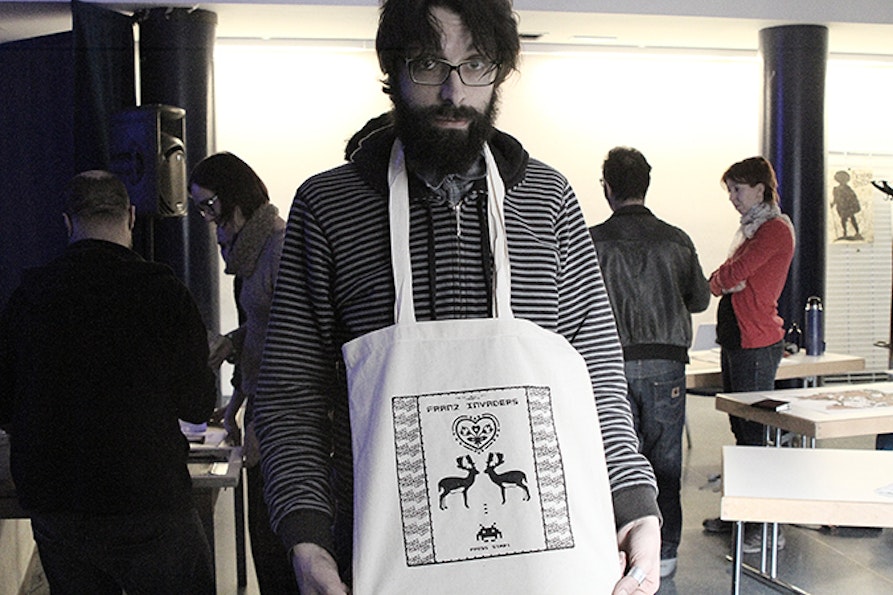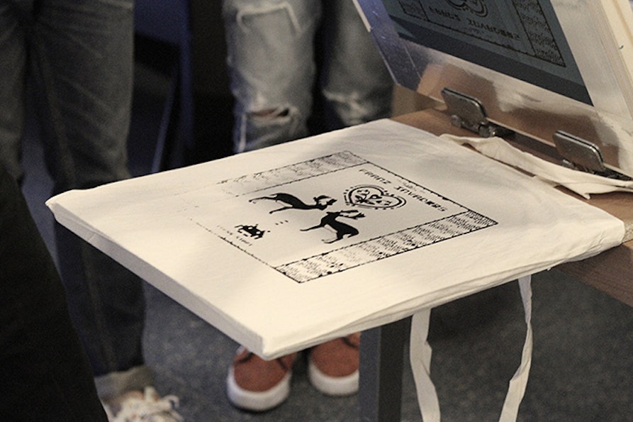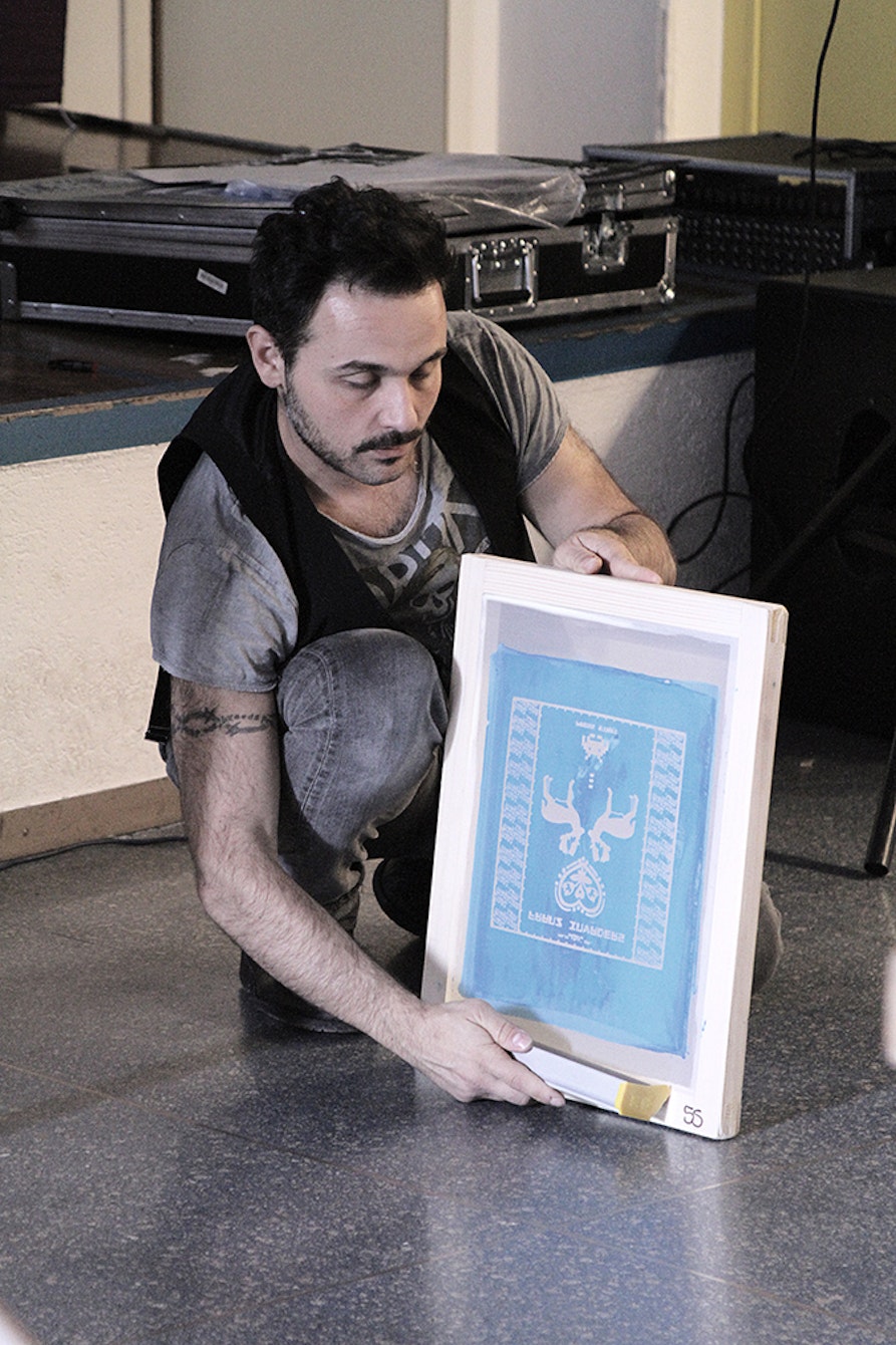 Das war der Siebdruck-Workshop mit den großartigen Oscar Odd Diodoro + Andrea Baldelli + Fabio Meschini, Mitte März 2014. Was die aufmerksamen Schülerinnen und Schüler gelernt haben, seht ihr auf den Fotos… Und ausserdem seht ihr noch: Den Schöpfer der neuen Tasche für franz, Felix Lalù, beim Bewundern seines Werkes. – Die Tasche wird übrigens in Bälde in allen Shops eures Vertrauens zu erstehen sein…