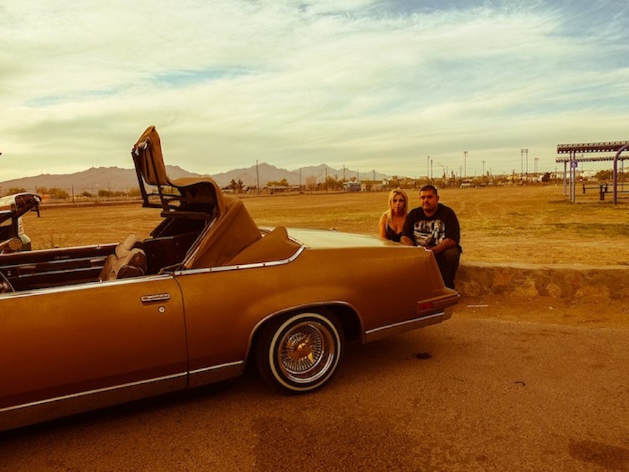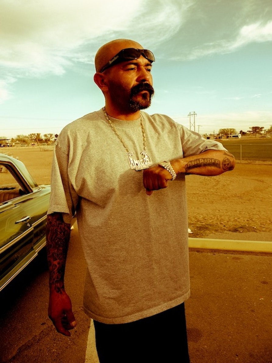 Julia Biasi (from Meran, living + working in NYC) after a street scouting trip for an ad-campaign with her friend Salome’ accidentally ended up across the “low-raider scene” in Texas. They were taking their girls for a joyride and showing off their cars and Julia and Salome’ took some pictures of them. – “Cholo is term implying a Hispanic male that typically dresses in chinos (khahki pants), a wifebeater sleeveless teeshirt or a flannel shirt with only the top buttoned, a hairnet, or with a bandana around the forehead, usually halfway down over the eyes.” (urbandictionary.com)