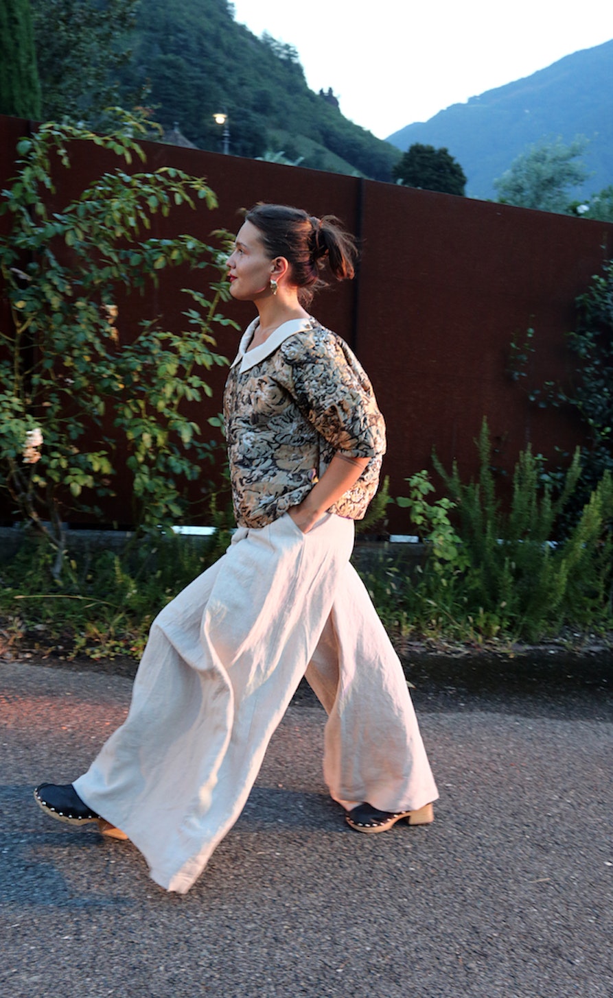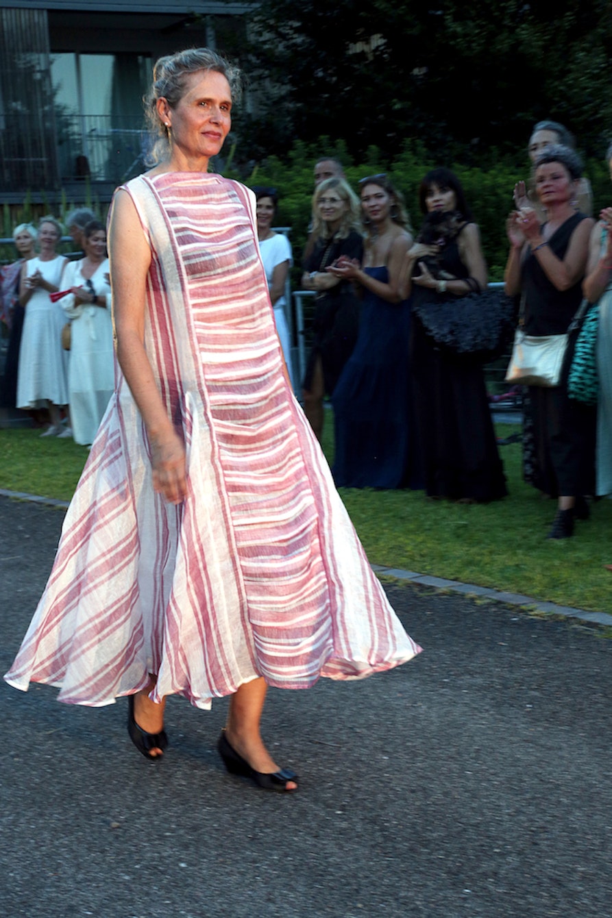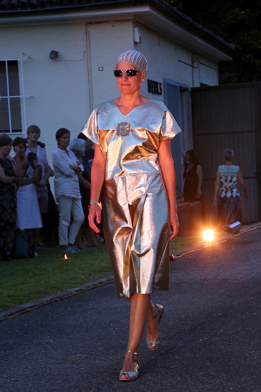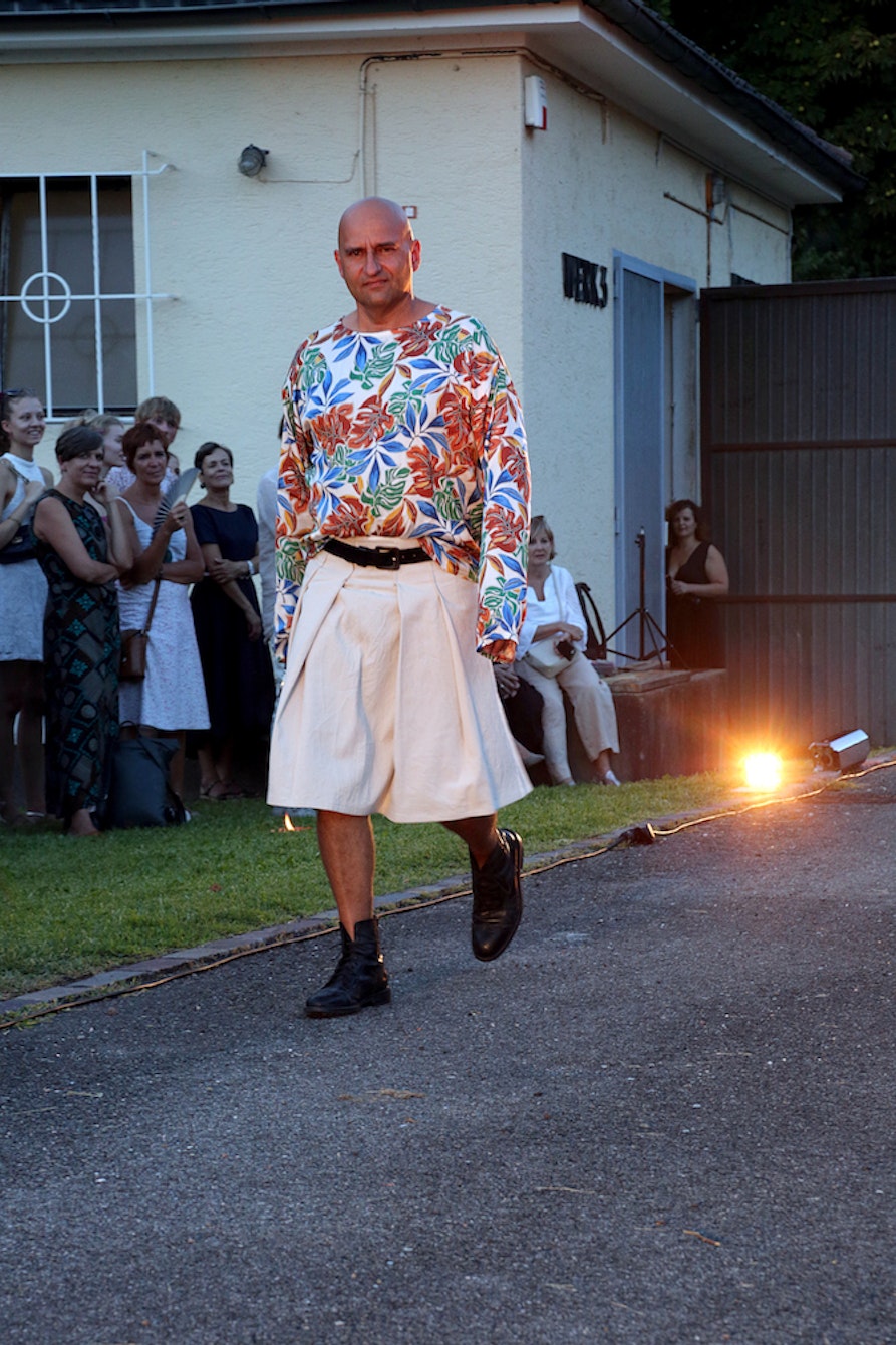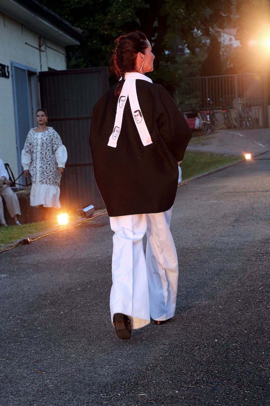 Da Mode immer auch visuell erfahrbar sein sollte, gab es dazu eine Fashion Show. Im November 2022 zeigte die in Bozen lebende bulgarische Designerin Violeta Nevenova im Kraftwerk Rendelstein eine Auswahl ihrer Arbeit: alles Einzelstücke, handgefertigt aus Reststoffen. Eine andere Jahreszeit, neue Entwürfe – wir entschieden uns dazu, dass Violeta auch diesen Abend mit ihren Designs bespielen sollte. Diesmal fand die Fashion Show draußen statt, vor der alten, stillgelegten Kraftanlage Rendelstain. Wir hatten Glück mit dem Wetter, die Hitze war erträglich und wir haben einen wunderschönen Abend miteinander verbracht.