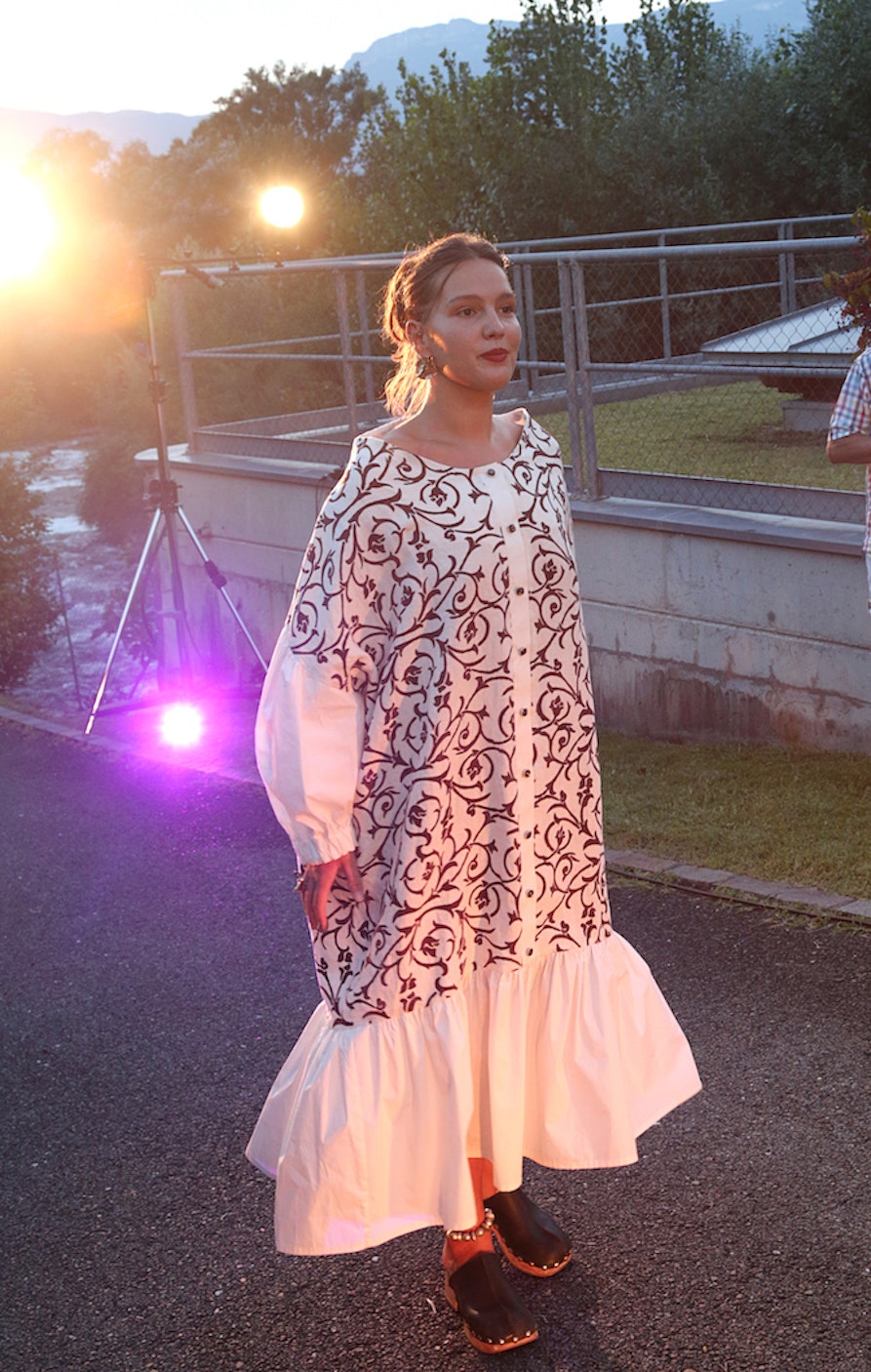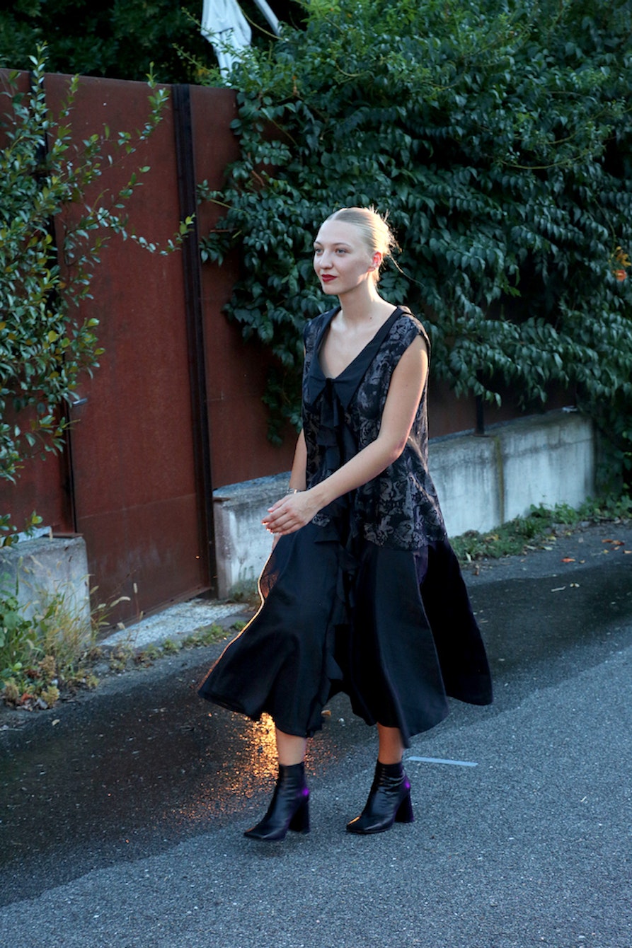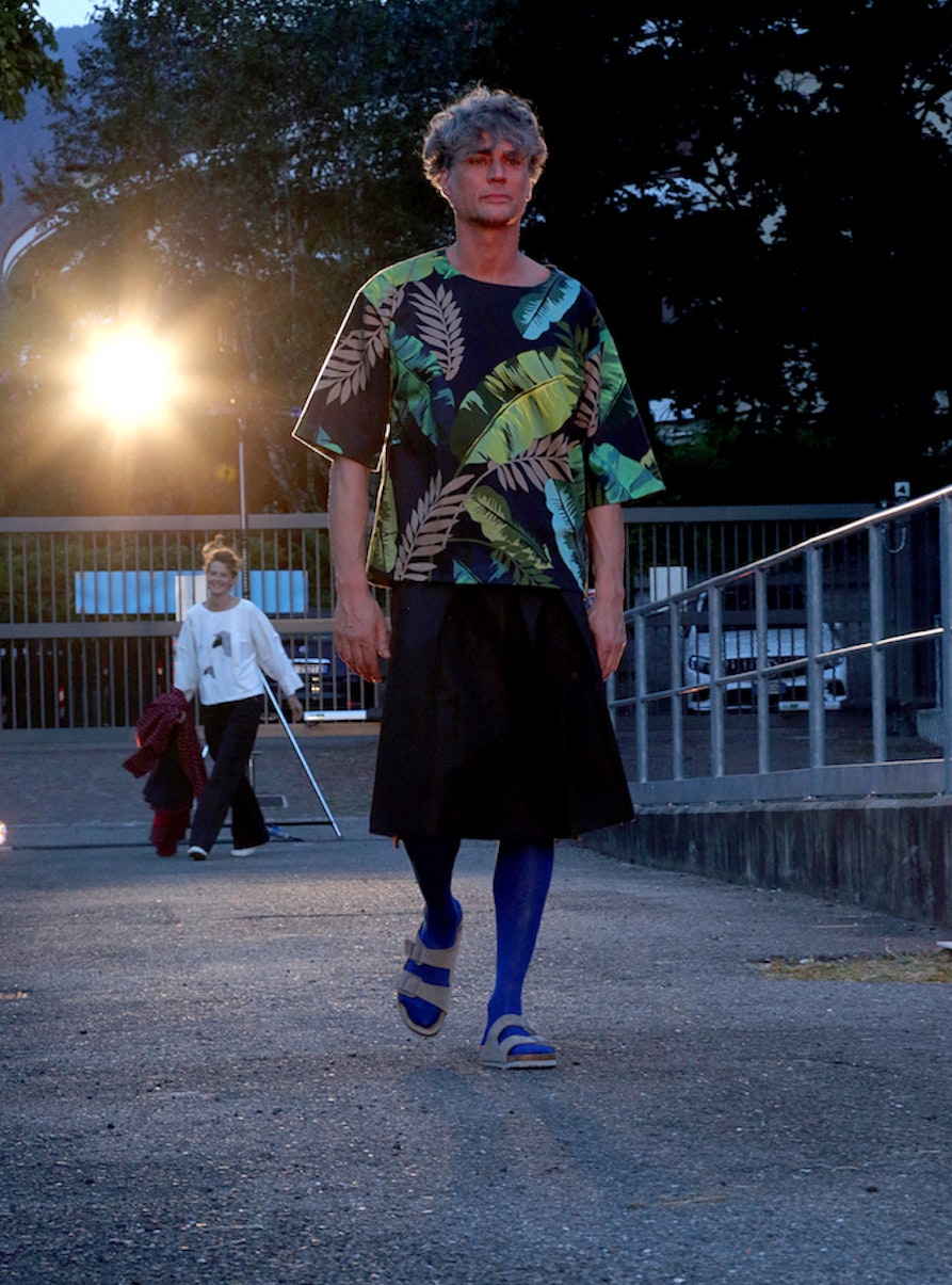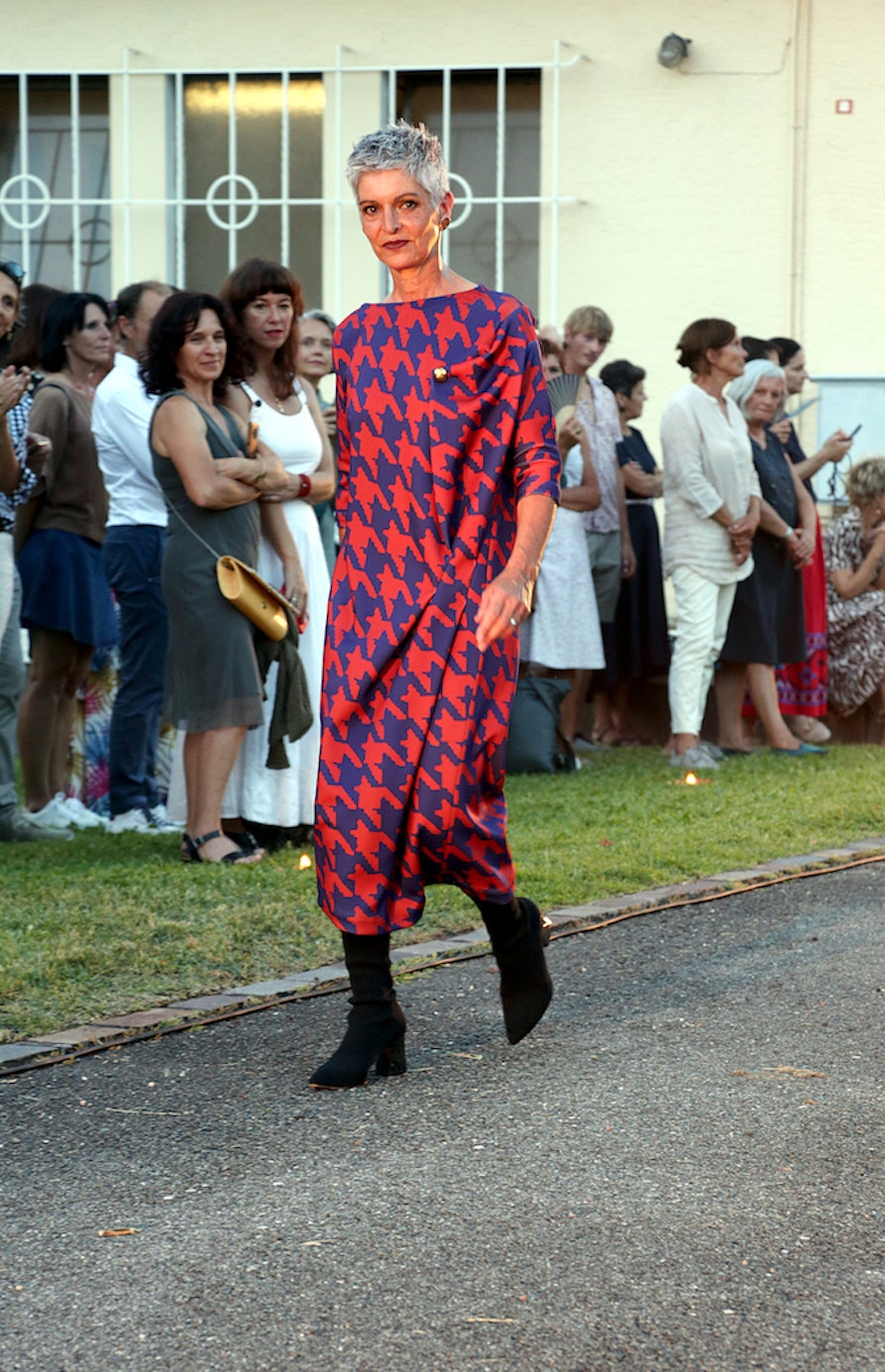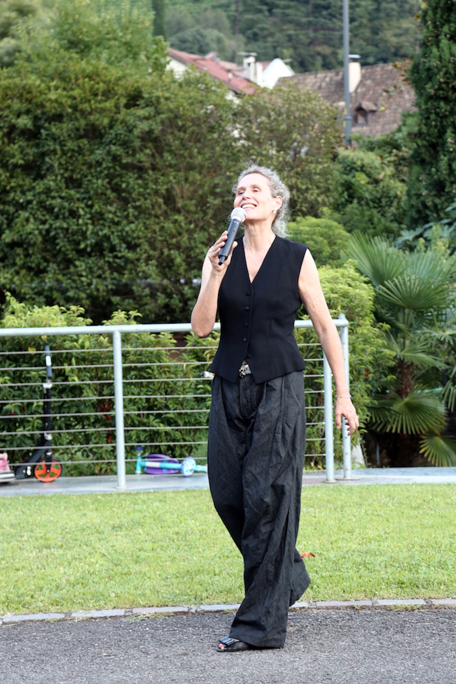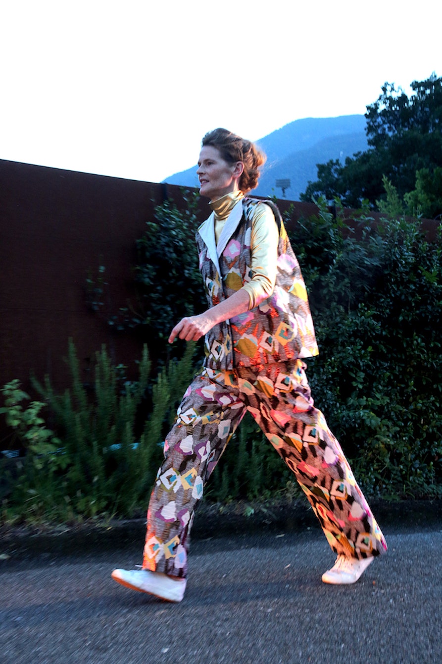 Da Mode immer auch visuell erfahrbar sein sollte, gab es dazu eine Fashion Show. Im November 2022 zeigte die in Bozen lebende bulgarische Designerin Violeta Nevenova im Kraftwerk Rendelstein eine Auswahl ihrer Arbeit: alles Einzelstücke, handgefertigt aus Reststoffen. Eine andere Jahreszeit, neue Entwürfe – wir entschieden uns dazu, dass Violeta auch diesen Abend mit ihren Designs bespielen sollte. Diesmal fand die Fashion Show draußen statt, vor der alten, stillgelegten Kraftanlage Rendelstain. Wir hatten Glück mit dem Wetter, die Hitze war erträglich und wir haben einen wunderschönen Abend miteinander verbracht.
