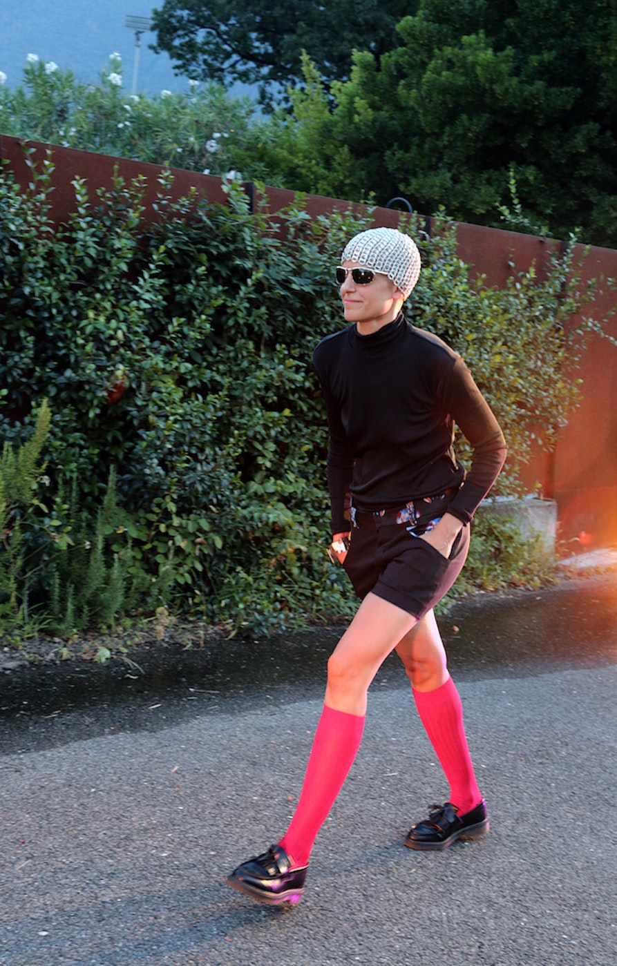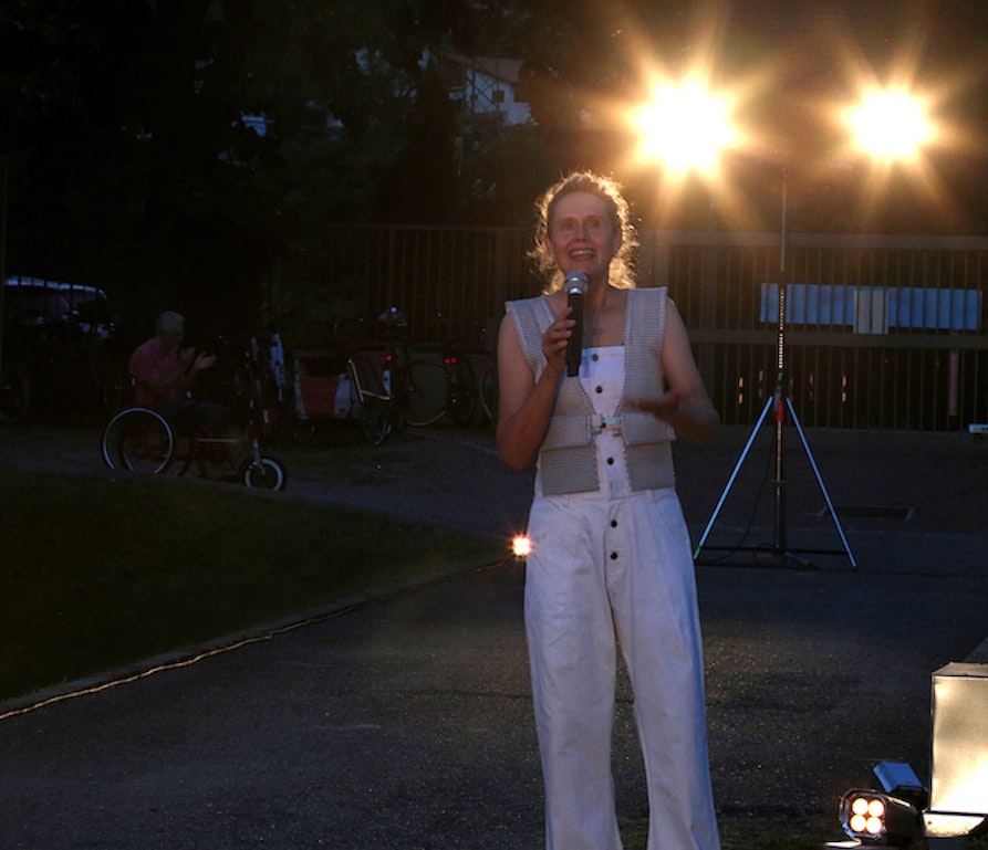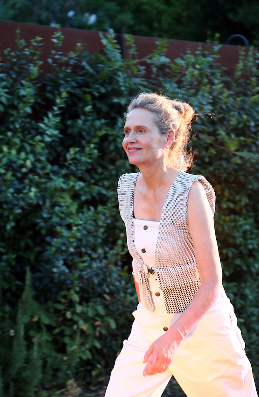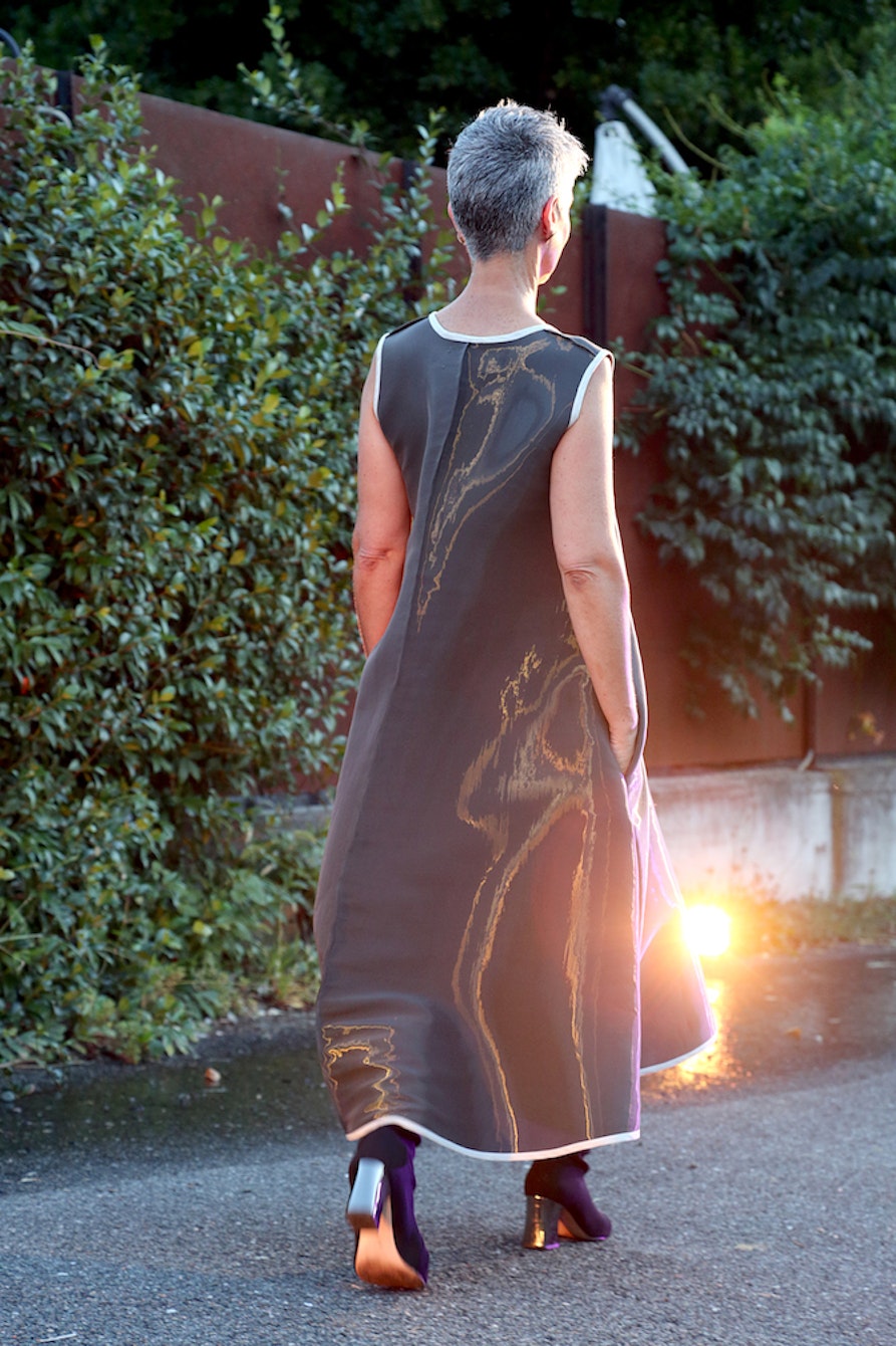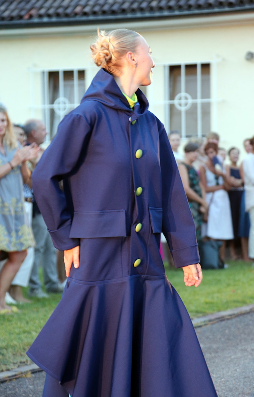 Da Mode immer auch visuell erfahrbar sein sollte, gab es dazu eine Fashion Show. Im November 2022 zeigte die in Bozen lebende bulgarische Designerin Violeta Nevenova im Kraftwerk Rendelstein eine Auswahl ihrer Arbeit: alles Einzelstücke, handgefertigt aus Reststoffen. Eine andere Jahreszeit, neue Entwürfe – wir entschieden uns dazu, dass Violeta auch diesen Abend mit ihren Designs bespielen sollte. Diesmal fand die Fashion Show draußen statt, vor der alten, stillgelegten Kraftanlage Rendelstain. Wir hatten Glück mit dem Wetter, die Hitze war erträglich und wir haben einen wunderschönen Abend miteinander verbracht.