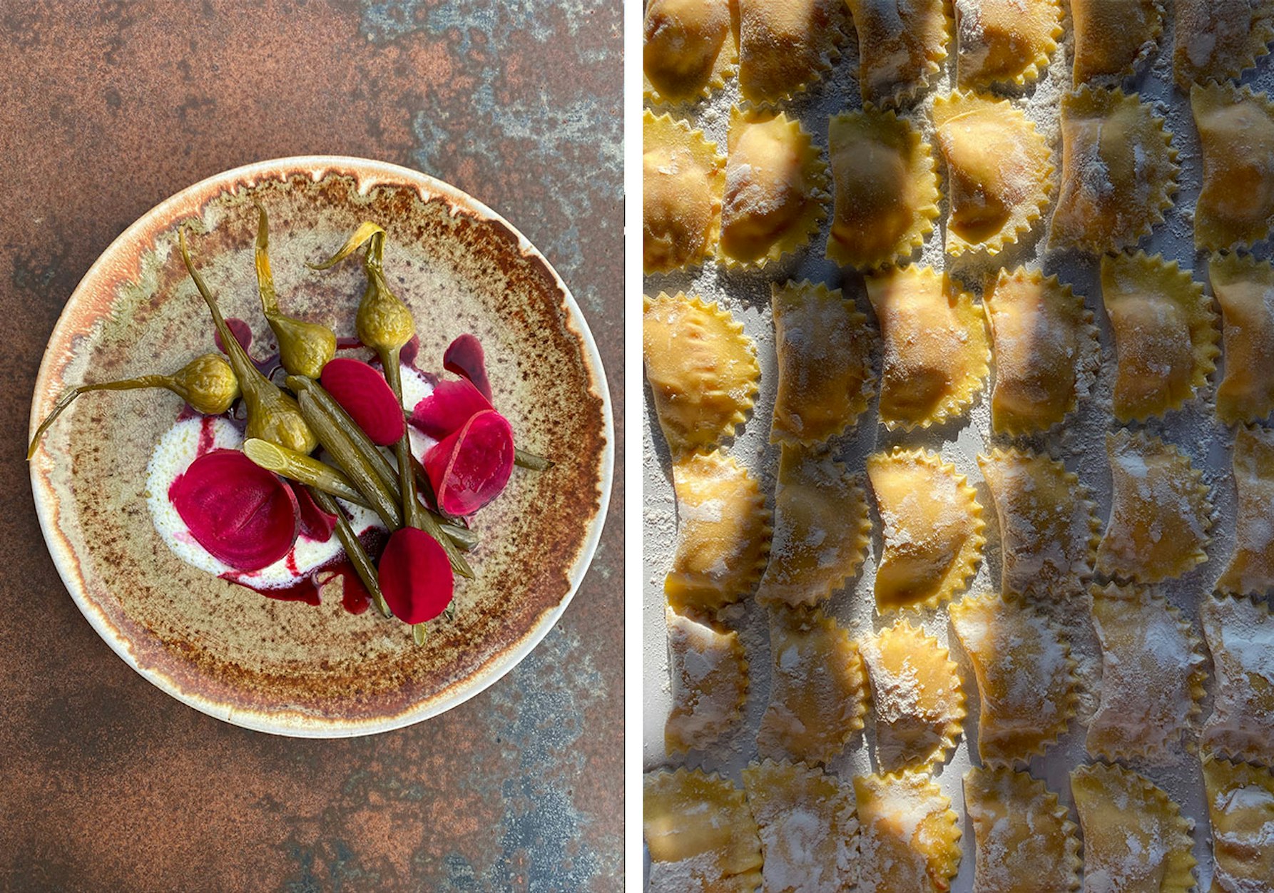 Rientrata ad Amsterdam e quindi di nuovo ai fornelli, il mio approccio alla cucina era decisamente cambiato rispetto alla scelta e all’utilizzo delle materie prime nei miei piatti. A seguire, desiderosa di sperimentarmi nuovamente, di conoscere e fare nuove esperienze, mi sono spostata in altre terre come la Francia (in Provenza) e poi di nuovo in Italia (in Toscana, un luogo che ci ha fatto sentire davvero a casa e che ci ha scaldato il cuore). Qui ho lavorato in un agriturismo vero, dove tutti i prodotti erano a KM zero, dove i piatti erano prevalentemente a base vegetale e quindi realizzati con i doni dell’orto. Ero alle prese con “Scarti d’Italia 2” e la mia vita era scandita dai tempi e dalle volontà di un orto (così dovrebbe sempre essere quando si prepara un piatto), un elemento che detta nel vero e proprio senso della parola l’organizzazione della cucina, di un menù. Quest’esperienza formativa ha rappresentato un passaggio importante per me: penso al dover fare i conti con gli effetti del cambiamento climatico che stiamo vivendo (che rendeva il terreno eccessivamente secco per via della siccità) e quindi la necessità di fare delle scelte su quali ortaggi coltivare e quali no in base alla disponibilità di acqua. Una volta terminata quest’esperienza abbiamo fatto ritorno ad Amsterdam fino a che non abbiamo sentito il desiderio di rientrare in Italia, di nuovo in Trentino, a Rovereto.