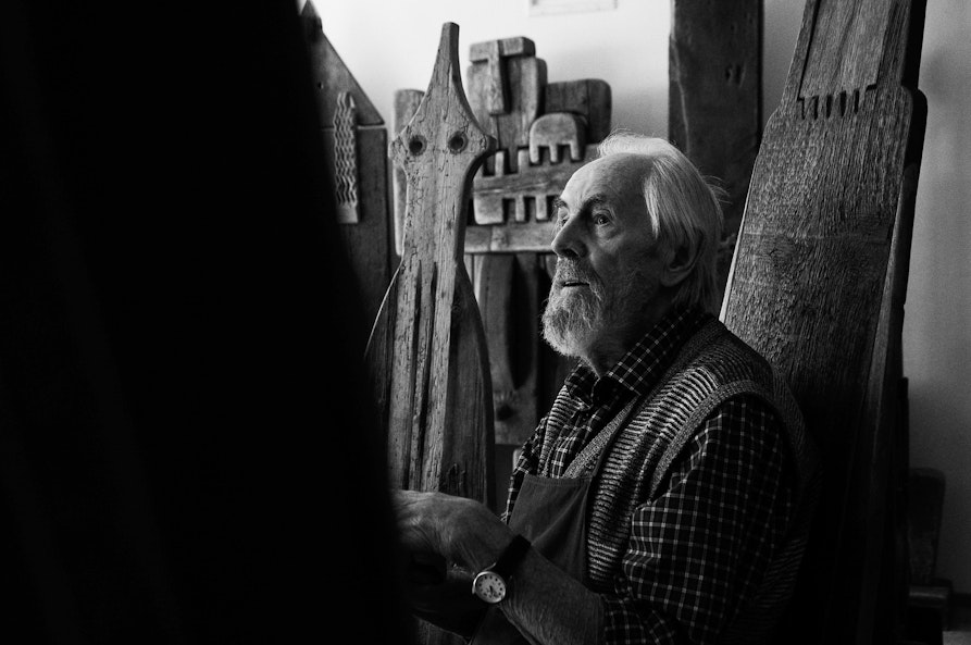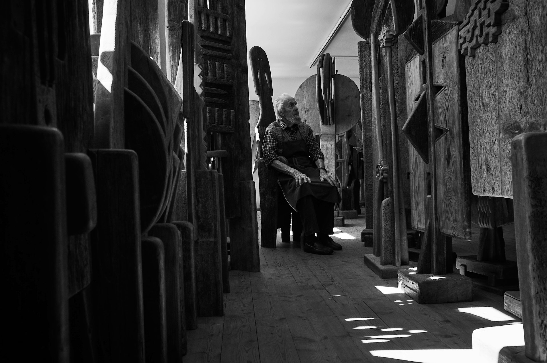 Celebre per le sculture di grande formato come i troni e i totem, Vallazza è di certo una delle figure di maggior spicco nel panorama artistico alpino e oggi, all’alba del centenario, Museion a Bolzano gli dedica una mostra visitabile negli ampi spazi di Museion Passage, dal 13 marzo al 2 giugno 2024. Con l’occasione di questa celebrazione, dedichiamo anche noi un omaggio a questo grande uomo, attraverso questa serie di ritratti che la fotografa gardenese Vera Comploj a realizzato nello studio dell’artista a Ortisei.