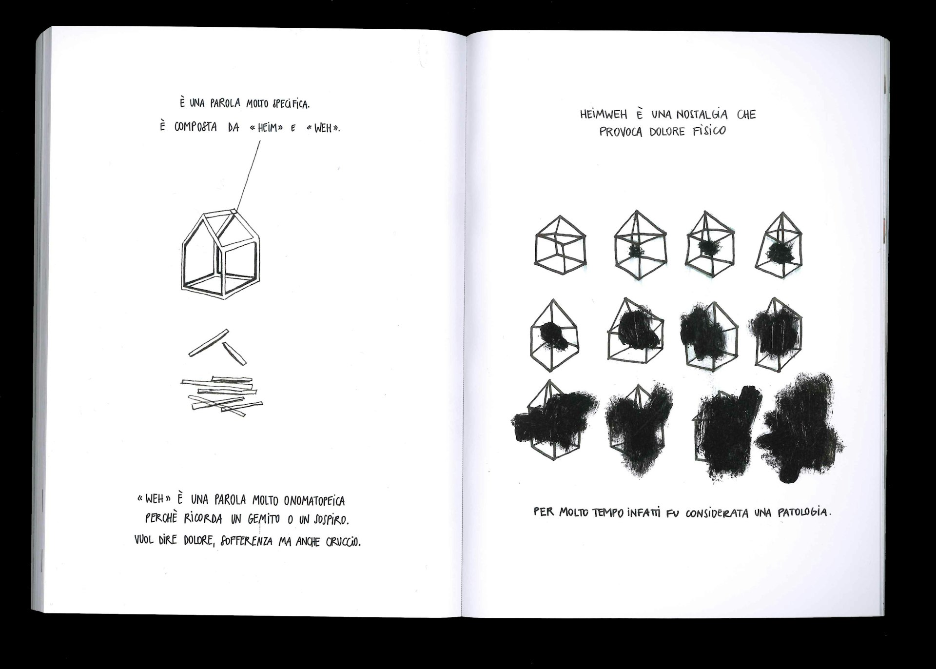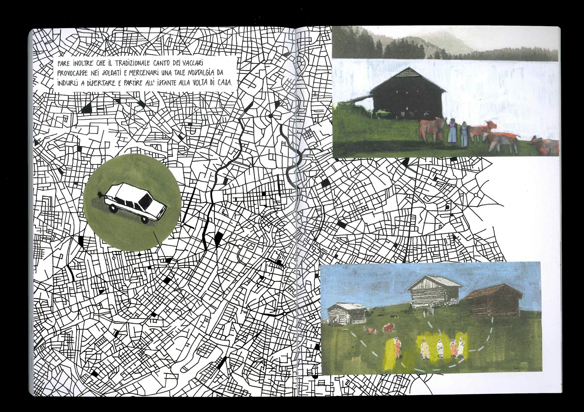 Sí, è stata la mia tesi di laurea magistrale all’ISIA di Urbino ed é un progetto che io considero ancora aperto, nel senso che vorrei tornare a lavorare su alcune parti e farne un “libro vero”. Volevo riuscire a raccontare alcuni momenti cruciali della storia del Sudtirolo attraverso la lente del rapporto tra i gruppi linguistici, poi la storia ha preso una direzione un po’ diversa, sviluppandosi attorno a delle riflessioni su alcuni concetti molto grandi, come appunto appartenenza, casa, Heimat, Heimweh… ça va sans dire, non ho scritto o disegnato nulla in grado di fornire risposte alle mie domande, ma forse non era quello l’obiettivo, e anzi ho solo generato altre domande (ride). Però ho avuto modo di raccontare alcuni avvenimenti fondamentali, primo tra tutti quello delle Opzioni, che appunto non sono conosciuti al di fuori di qui e l’accoglienza da parte dei professori é stata molto buona e c’é stato molto interesse nel veder raccontata una storia complicata.