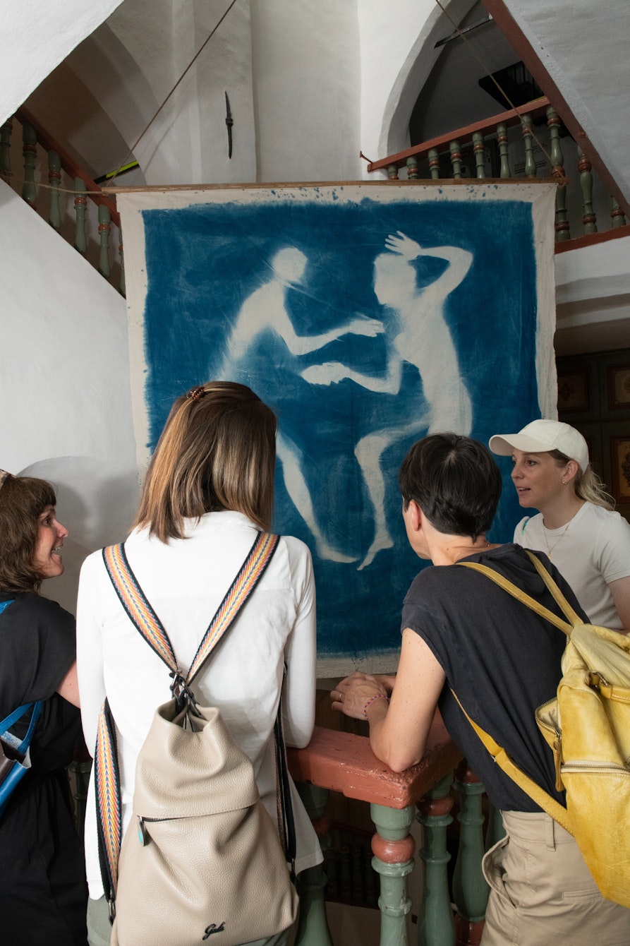 Una delle tre artiste, Laura Pan, rivela il suo contributo alla mostra raccontando il coinvolgimento della scrittrice Monica Trettel, che questo sabato, 31 agosto alle 16.00, presenterà in galleria il suo ultimo libro “La zuppa di pollo e l’ostetrica su quattro ruote”: un testo in cui condivide le sue impressioni dal punto di vista di una delle ultime ostetriche a domicilio dell’Alto Adige.