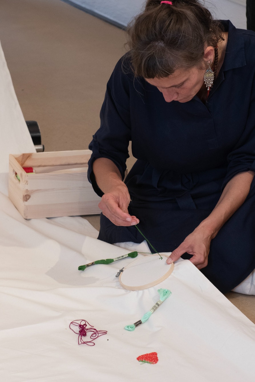 Helga von Hofe incarna la pesantezza e la difficoltà di “indossare” il ruolo di madre attraverso enormi zaini con la pancia. Sarah Solderer, invece, attraverso la sua installazione partecipativa “Neues Leben, neues Glück?” offre la possibilità ai visitatori di rompere alcuni tabù attraverso il ricamo di una tela.