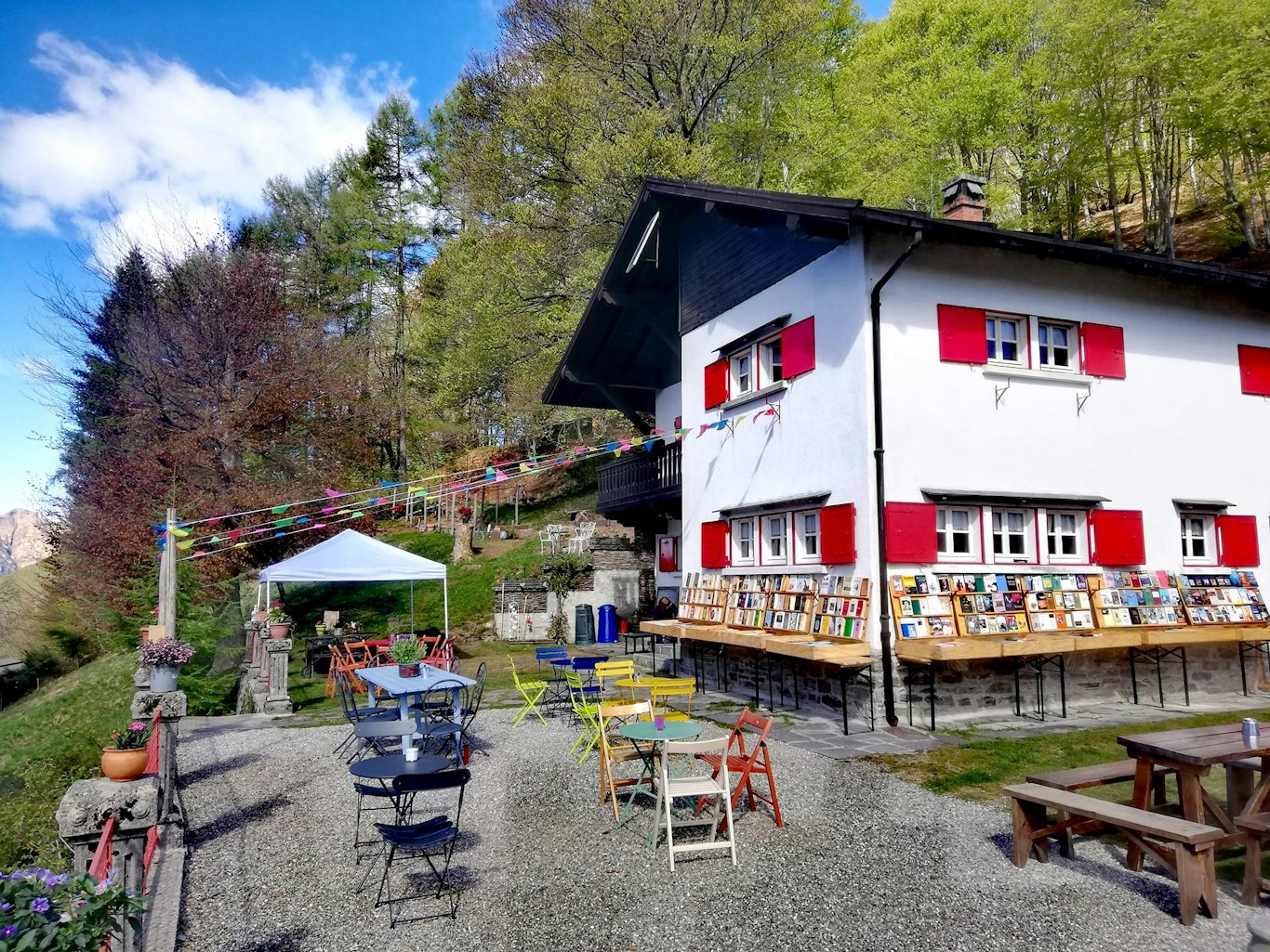 E se all’inizio era un sogno, fatto di piccoli primi tentativi e brevi aperture, adesso il sogno è diventato realtà e da due anni la libreria rimane aperta da aprile a dicembre presidiando l’alpeggio. Non sono gli eventi, che si sono sempre più diluiti dando soprattutto spazio a relazioni di valore con produttori locali e realtà del territorio, ma sono i libri, il territorio e le persone che lassù arrivano il centro dell’attività della Libreria Alpe Colle. “Non c’è nulla, ovvero c’è tutto”, così mi dice Marco, a sottolineare che non deve essere l’evento a stimolare le persone a raggiungere la libreria, ma proprio la consapevolezza di “riuscire così a ritagliarti un momento per te”, per sfogliare i libri, per leggere, per rallentare e conoscere qualcosa di nuovo. “Seminare libri mi affascina”: già perché Marco è proprio un “seminatore di libri”, non libri qualsiasi, ma che si trovano difficilmente e che lui va a scovare nella sua caccia settimanale di titoli antichi e di rarità, libri che incontrano persone che magari non ne avevano mai comprato uno, che erano all’Alpe per una passeggiata e che invece capitano lì e si vedono fiorire un libro in mano. Questa è la sua soddisfazione più grande, far intrecciare i due mondi dell’abitare la montagna, camminarci dentro, attorno, sopra e dell’abitare i libri e le loro meraviglie. In entrambi i casi non è la sete della conquista della vetta o del possesso, ma l’orizzontalità della montagna e dell’esperienza, come i pascoli e gli alpeggi insegnano nel loro sviluppo orizzontale, in cui è custodito da secoli un rapporto d’equilibrio tra uomo e natura, senza gesti estetici o sportivi. Tornare in montagna dunque per viverla nella propria genuinità, senza andarla a drogare di eventi o snaturandola, ma vivendola per quello che è e per tutte le meraviglie che può offrire, senza nemmeno proporne una visione edulcorata opposta alla città, ma anzi collegandole per nutrirsi a vicenda. Marco stesso, proprio in vista di questa relazione, nel suo sito indica anche varie idee per trekking ed escursioni tra il Parco Nazionale della Val Grande e il Lago Maggiore.