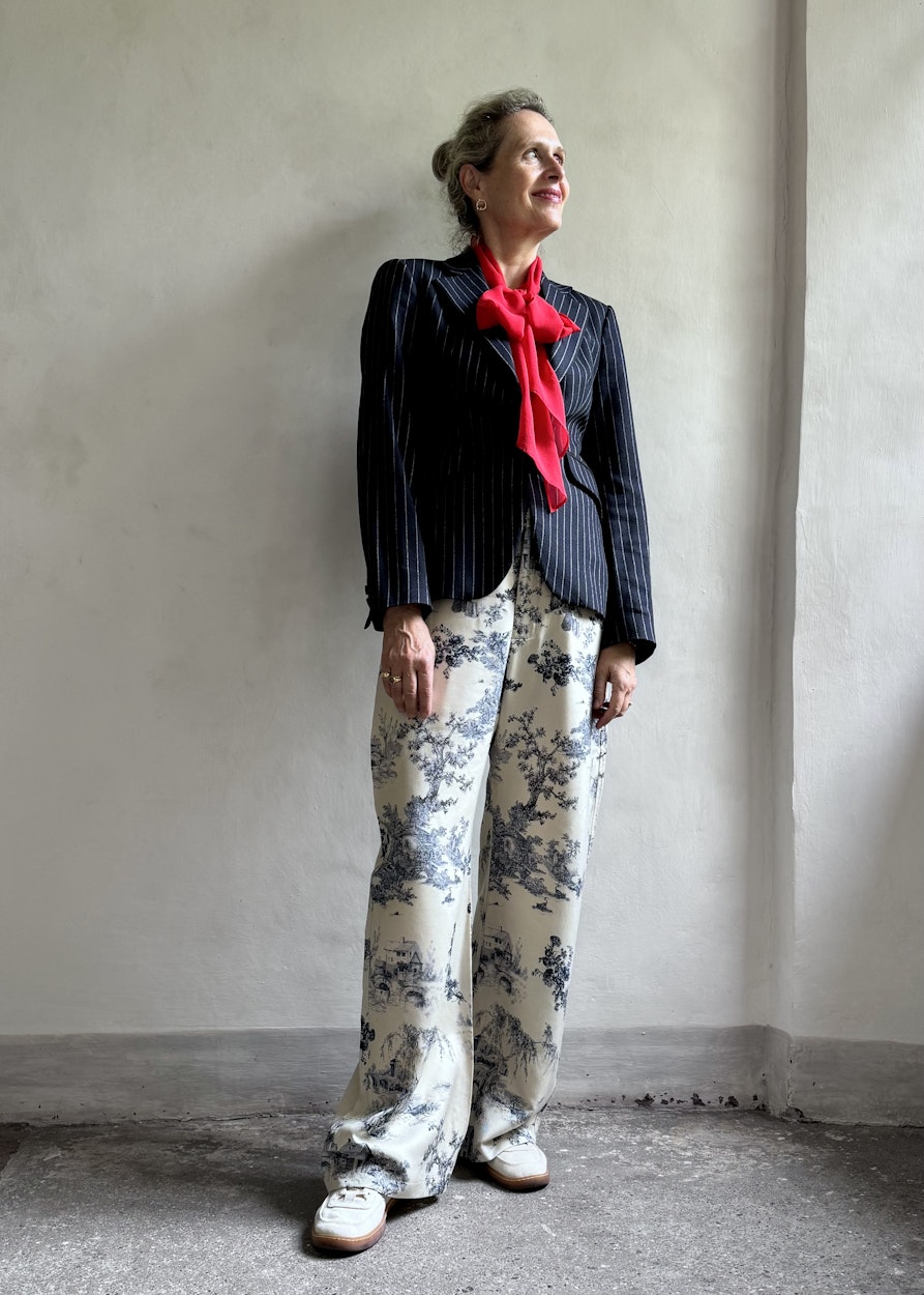 Sich in ein Outfit von der Stange zu kleiden, das zu kaufen, was Influencerinnen oder irgendwelche Brands gerade hypen, ist vergleichsweise einfach und wenig nachhaltig. Und mit persönlichem Stil hat das meist auch wenig zu tun. Das heißt nicht, sich nicht inspirieren zu lassen. „Inspiration ist die halbe Miete”, würde eine Bekannte von mir sagen. „Ob man sich da nicht zu wichtig nimmt?”, höre ich fragen. Aber wen, wenn nicht sich selbst, sollte man zunächst mal ernst und auch wichtig nehmen? Wie ich in der Welt unterwegs bin, hat viele Auswirkungen. Das fängt beim Benehmen an und hört bei der Kleidung auf. Und wer möchte nicht als jemand wahrgenommen werden, die einen entspannten, guten, weil zu ihr passenden Stil hat? Übrigens schreibe ich hier gerade überwiegend in der weiblichen Form, nicht, weil das nur Frauen betrifft, sondern weil ich denke, wieso nicht mal die weibliche Form für alle nehmen? Geht uns ja ständig so andersherum. Männer sind also durchaus mitgemeint, denn das Thema betrifft sie genauso, auch wenn ihnen das vielleicht weniger klar zu sein scheint noch.