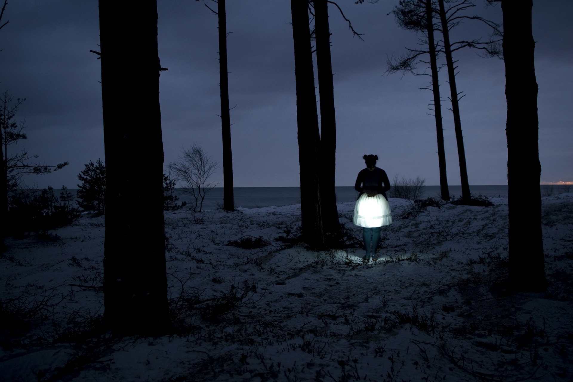 Ogni serie ha uno scatto che preferisco, tuttavia il mio scatto più rappresentativo è della serie “Afterdark”: una foto che mi ha fatto vincere parecchi premi all’inizio della mia carriera. È un autoscatto realizzato in Svezia, su una spiaggia in mezzo alla neve, in cui indosso una gonna bianca illuminata da una torcia. Un’immagine che continua a tornare nel mio percorso artistico; oggi, però, non mi ci riconosco: trovo che racconti un’illusione della natura che non mi appartiene più. La magia di quell’immagine forse non la colgo più, anche se continua a essere richiesta da gallerie e produzioni cinematografiche.