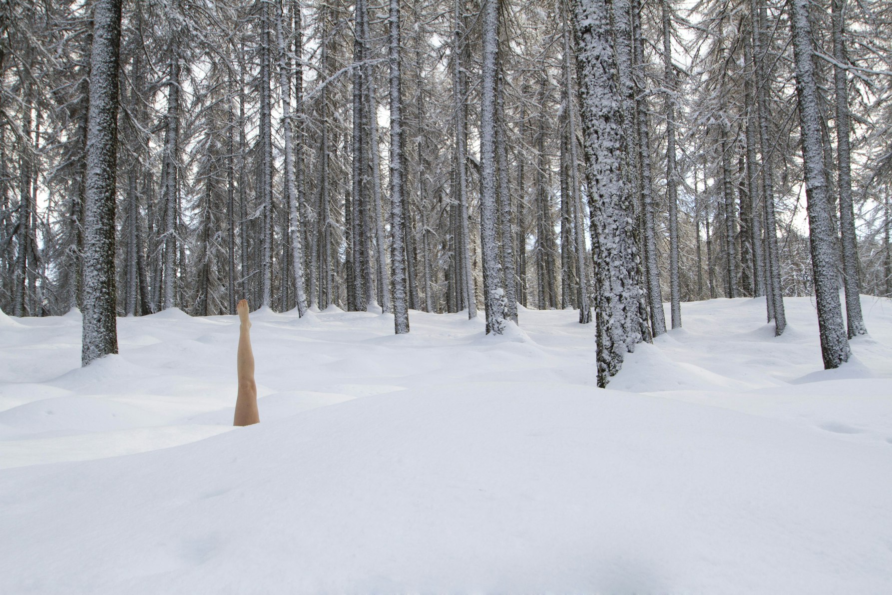Le Alpi sono sempre state centrali nel mio lavoro. Anche nei progetti di natura commerciale o istituzionale c’è sempre una parte di bosco, di Alpi, di territorio montano. Mi sono resa conto, soprattutto dopo Vaia, che la figura umana ha cambiato il suo ruolo all’interno del mio lavoro. Prima, realizzavo molti autoscatti in cui cercavo un equilibrio – forse con me stessa, forse con l’essere umano in generale – tra la figura umana e la natura. Ma dopo Vaia, quel bilanciamento si è spezzato e non ci sono più io nei miei progetti; ora ci sono modelle, amiche, figure femminili, con un’unica eccezione: un ragazzo albino immerso nella neve. È come se fossi diventata una spettatrice, osservando e registrando la natura come soggetto principale, mentre l’essere umano diventa quasi un pretesto per raccontare il territorio e il disequilibrio tra uomo e ambiente generato dal modo in cui l’uomo piega la natura.