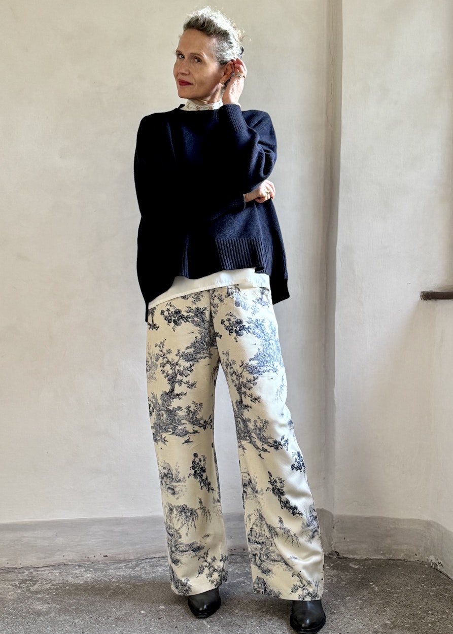 I dress to be ready for any occasion – going for a school run, travelling, meeting, going to a gallery opening. Which means I want to be presentable but comfortable, but also quietly standing out of a crowd. To do that, I have a set of very few garments each season – that work for all these occasions, they can be mixed and matched. That way I do not have a decision fatigue each morning what to wear. I just grab and go. For example, I wore a pair of our cotton culottes for 2 summers now – that work for a photoshoot on the mountains of Mongolia and I was equally comfortable walking in them on the streets of Los Angeles.
