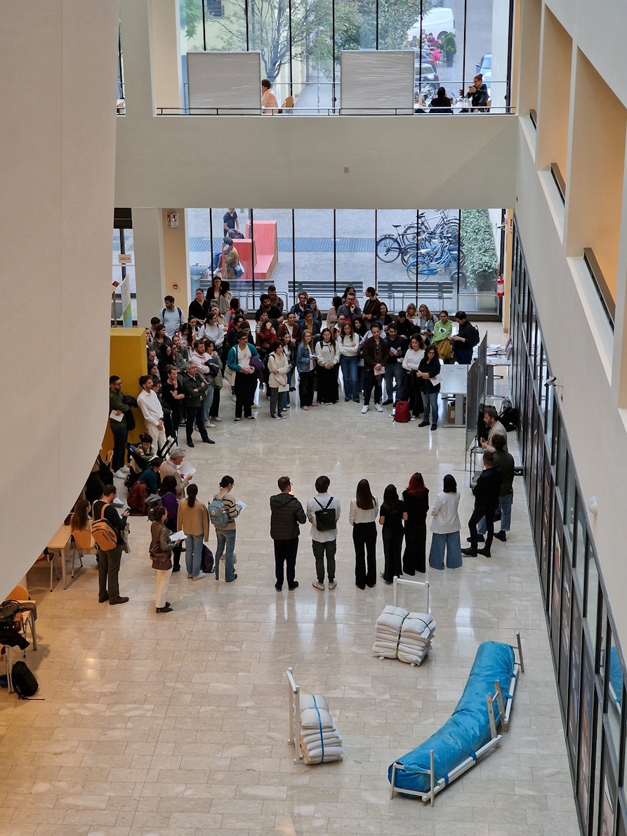 Crediamo che la risposta degli studenti sia stata positiva. Ovviamente, non è sempre facile creare interazioni e animare quella dimensione collettiva che dovrebbe caratterizzare l’università, ma nel complesso – ora che Spillover è quasi giunta al termine – possiamo ritenerci soddisfatte del risultato. Gli studenti e le studentesse sembrano fermarsi e incuriosirsi di fronte alle opere, posizionate in un contesto “insolito” come quello universitario. L’affluenza all’inaugurazione è stata significativa, così come l’interesse generale per gli eventi di mediazione, sia per quelli più piccoli, come le visite guidate, sia per quelli di maggiore rilievo, come le conferenze. La risposta, quindi, è stata decisamente positiva e propositiva. Siamo riusciti a suscitare curiosità e un buon livello di coinvolgimento anche se è sempre difficile valutare la profondità di questo impatto: l’idea di scegliere artisti con opere così diverse voleva andare a toccare la diversa sensibilità di ciascun visitatore. Sarà interessante vedere se, in futuro, Spillover sarà capace di generare nuove dinamiche e stimolare ulteriori riflessioni.