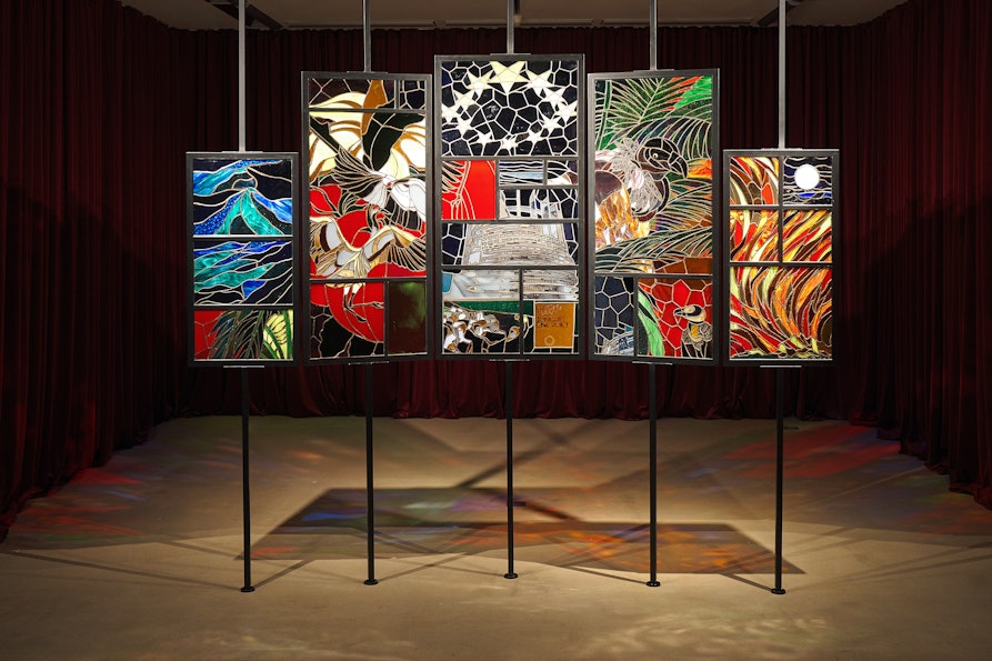 Diese Ausstellung ist das Ergebnis einer langen Kollaboration und vieler Gespräche mit der Kuratorin der Ausstellung Nina Tabassomi im Rahmen meiner fortlaufenden Erforschung kultureller Landschaften und der Geschichten, die sie bergen. Sie ist ein Dialog zwischen einigen älteren Werken und zwei neuen, die ich speziell für die Ausstellung geschaffen habe. Der Titel selbst – In Fire Yet We Trust – fasst die Spannung zwischen Hoffnung und Verzweiflung zusammen. Die Besucher*innen können eine Erfahrung erwarten, bei der jedes Stück zur Reflexion über Vergangenheit und Gegenwart einlädt. Die Ausstellung fordert die Betrachter*innen heraus, darüber nachzudenken, wie wir mit Stabilität und Fragilität umgehen und wie diese Konzepte unser Verständnis von Identität und Ort beeinflussen.