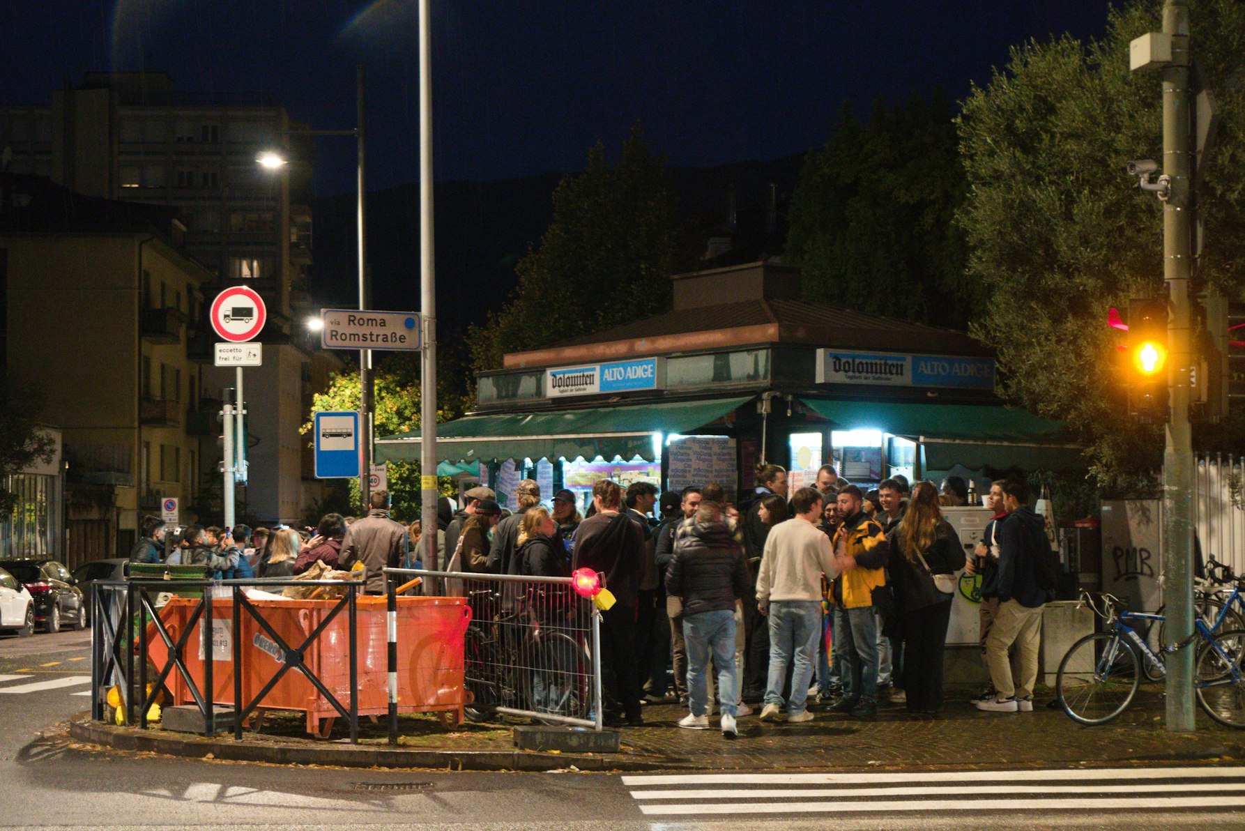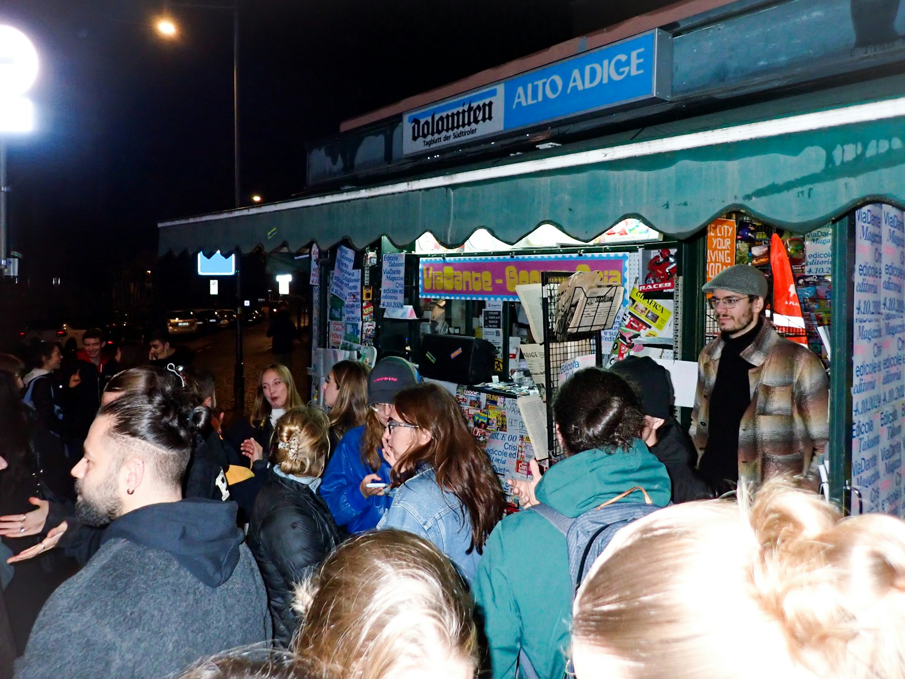Anwohner*innen, die sich ihren Weg durch die Traube junger Studierender rund um den Kiosk bahnen, Passant*innen, die sich an den Fenstern vorbeifahrender Busse erstaunt die Nasen plattdrücken. Aus großen Boxen schallen die House- und HipHop-Beats einiger Kollektiv-Mitglieder, Bier, Magazine und Sticker – alles auf freiwilliger Beitragsbasis. Sehr studentisch eben … jedoch nicht wie jede übliche Studi-Party. Mit dem Takeover sorgt das Kollektiv vier Stunden lang für eine regelrechte Migration der Studierenden-Bubble jenseits des Talferbachs – und das an eine Kreuzung in einer Zone Bozens, die zwar sehr belebt, eigentlich aber fern von studentischem Aufruhr ist.