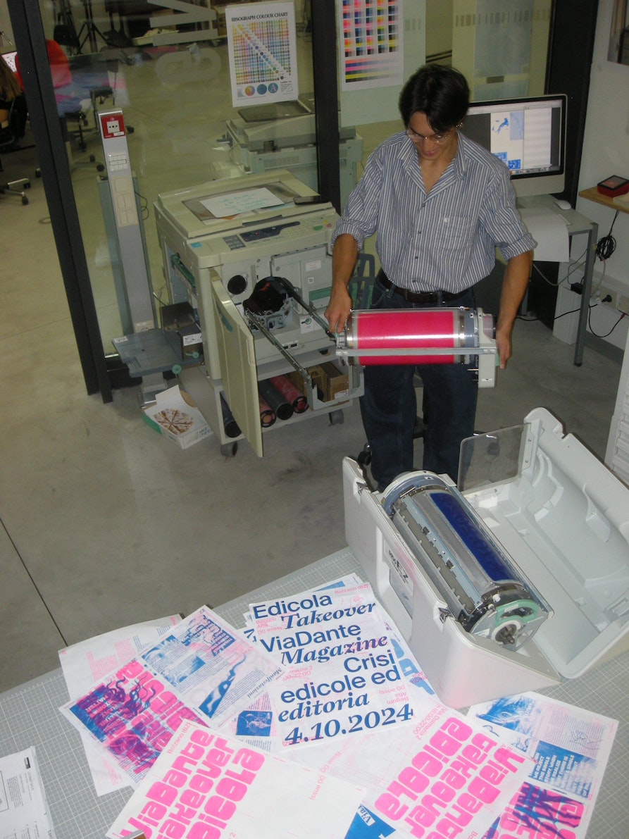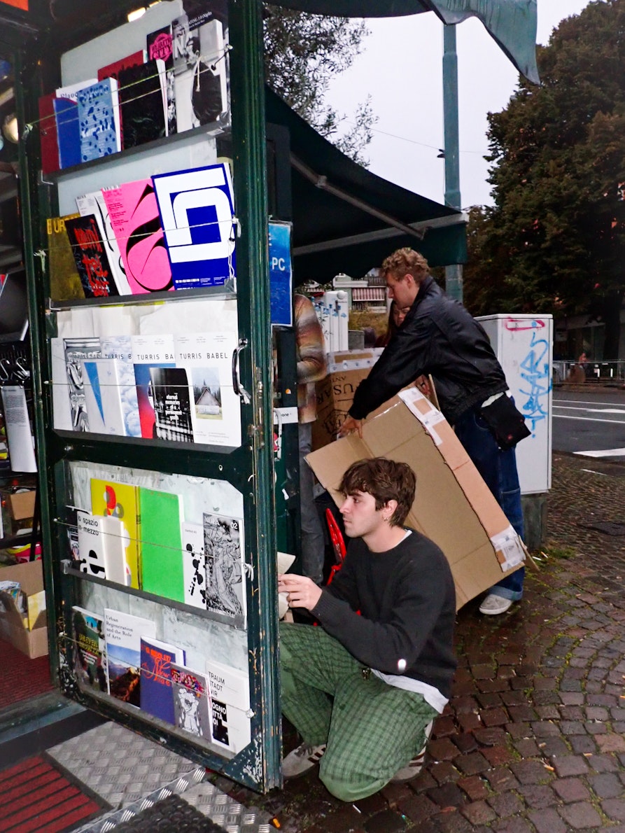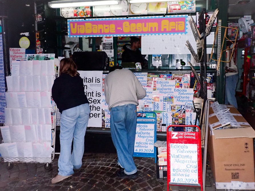 In wochenlanger Handarbeit hatten die Studierenden in den Werkstätten der Universität 100 Exemplare ihrer ersten Ausgabe über die Krise der Kioske und des Verlagswesens produziert – wie von Design-Studis zu erwarten, in originellem, makellosen Layout-Design und mit beeindruckenden Illustrationen, gedruckt mit dem Risographen in ikonisch zweifarbigem Look. Die Inhalte sind wohl kuratiert und verfolgen eine Kohärenz, welche die Vision des Kollektivs mit einem Ausblick über die sozio-kulturelle Bedeutung italienischer Kiosks, sowie mit Interviews von namhaften Stimmen aus der Welt des Verlagswesens in Verbindung setzen. Das Magazin war ausschließlich am Tag des Takeovers in Papierform erhältlich, ganz nach dem auf ihrem Plakat proklamierten Motto: Digital is Porn. Print is Sex. Trust the Paper.