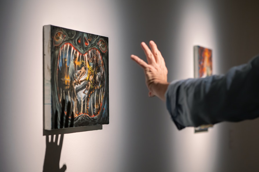 Il sacrificio del miele è una mostra che invita i visitatori a farsi strada in un viaggio visivo e spirituale, in cui la pittura diventa uno strumento di esplorazione dell’animo umano e dei suoi simboli. Non c’è un filo narrativo lineare, ma una serie di temi che si richiamano tra loro come eco lontane, elementi che ci conducono al confronto con le grandi domande esistenziali. Nelle sale della Galleria Civica, il passato e il presente si fondono, e il fruitore è accompagnato in una ricerca di significato che oscilla tra il sacro e il profano, tra il visibile e l’invisibile. Il risultato è un’esperienza che non si esaurisce in una semplice visita ma che continua a riecheggiare anche dopo aver lasciato la mostra, portando con sé una rinnovata consapevolezza della bellezza e della fragilità della nostra umanità.