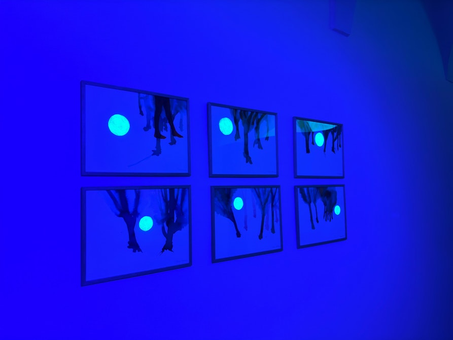 Eppure sembra tutto così fermo, tutto così silenzioso, ovattato dalla pioggia fuori che dà un ritmo tutto suo al mondo al di là, ma il ritmo al di qua, oltre la soglia, invece si sente, si sente eccome, batte forte: sono i colori a dare il ritmo, sono le pose degli animali, di cervi, lepri, zebre, leopardi, ritagliati per benino al momento della danza e della corsa più sfrenata, fermi in posa. Ci guardano una frazione millesimale di secondo, incastrano il loro sguardo nel nostro, ci scrutano, interrogativi, anche un po’ perplessi, “e voi perché state così fermi?” sembrano dirci, e poi, basta, se ne fregano di noi, ricominciano a danzare, vorticare, ballare a ritmo: quelli battuti, sconfitti, siamo noi, loro sono il battito.