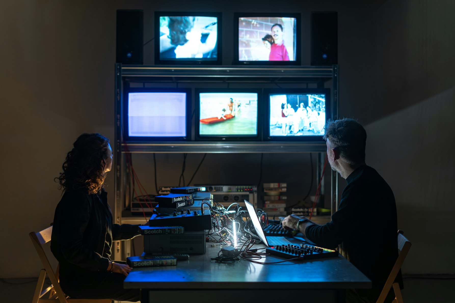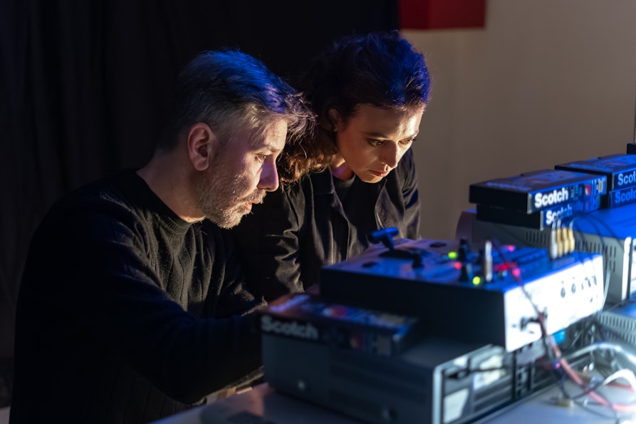 Tutto è iniziato nel 2019 quando venne diagnosticato a mio papà l’Alzheimer, quella malattia mostruosa che lentamente cancella i tuoi ricordi. Rivedere e digitalizzare quella preziosa collezione di VHS cariche di ricordi di famiglia per restituirgli frammenti di memoria era per me diventata una priorità. Poi in mezzo c’è stata una pandemia e, purtroppo, un tumore che ha portato via mio papà in tempi molto brevi. E lì ho sentito forte il bisogno di fermarmi, recuperare le forze e elaborare il tutto prima di inserire la videocassetta nel videoregistratore e, sopratutto, risentire la sua voce, che è una delle cose più difficili da affrontare dopo la scomparsa di una persona cara. L’immagine che avevo di questa performance continuava a girare nella mia testa e il desiderio era molto forte, ma ero spaventata. Nel 2023, c’è stato un periodo in cui ero in stallo con il lavoro, e mi sono detta: “lo faccio ora o mai più”. Fondamentale per me è stato parlare di BETA con persone che non conoscevano la mia storia o mio papà: vedere nei lori occhi l’emozione, percepire l’entusiasmo e il loro sostegno mi ha dato la forza di realizzarlo. In questo percorso, poi, devo ringraziare sopratutto Samira Mosca che ha saputo trovare lo spazio e il contesto adeguato per presentare BETA. Al mio compagno Maurizio Vescovi va il ringraziamento più grande per essersi dedicato alla parte audio della performance che come dicevo prima è un aspetto fondamentale nel ricordo, nella memoria dei nostri cari e delle persone che non fanno più parte della nostra vita oppure che ci sono ancora, ma sono cresciuti o invecchiati. Infine, una grande pacca sulla spalla a me, per aver avuto la forza di portare avanti il progetto e digitalizzare oltre 40 videocassette di formati diversi; cassette che ho prima di tutto guardato e analizzato per poi costruire un montaggio video che potesse essere un racconto, un viaggio.
