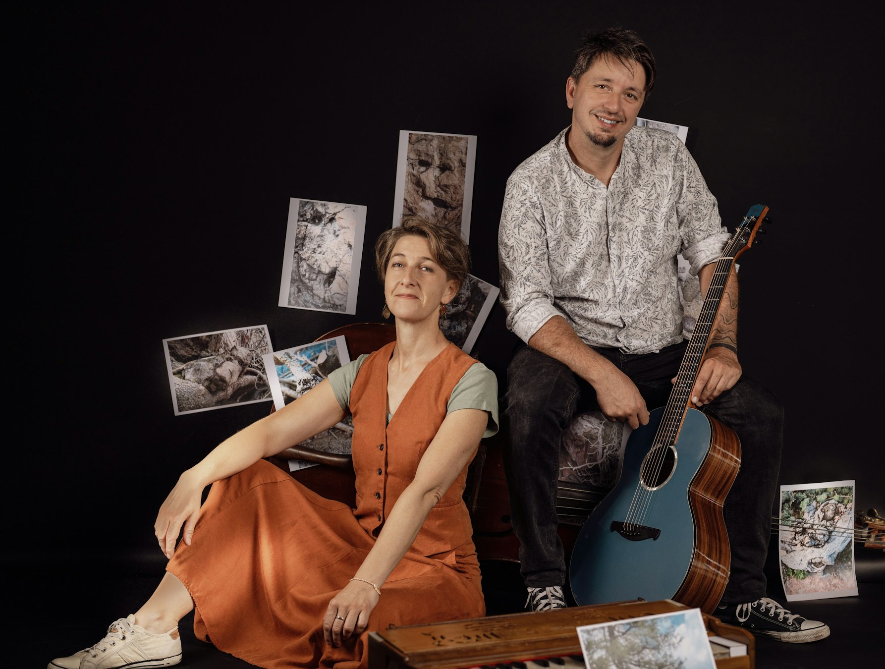 Bei meiner Auseinandersetzung mit einigen der Fotografien entstanden in meinem Kopf auch Melodien und Textfragmente. Ich habe sie ausgearbeitet zu vollständigen Liedern und dann aufgenommen. Danach habe ich mich getraut, Daniel zu fragen, ob er auf diese Zusammenarbeit Lust hätte. Daniel und ich wir kannten uns vom Improtheater Carambolage und ich schätze sein Können auf so vielen Instrumenten, wusste dass er auch singen und jodeln kann und vermutete, dass er auch in dieser Art neuen Volksmusik irgendwie zuhause sein könnte. Daniel hat meine Melodien dann arrangiert und auskomponiert. Es war eine sehr intuitive und gute Zusammenarbeit und für mich toll zu erleben, wie die Lieder wuchsen und mehr und mehr Format bekamen.