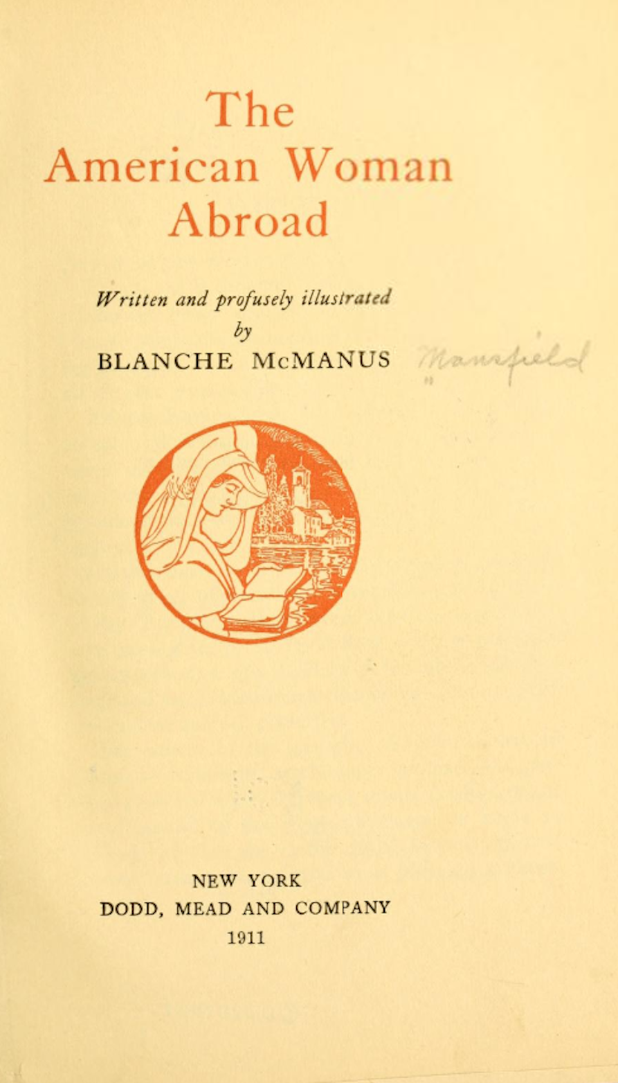 So erging es mir mit einem Buch, auf das ich im Zuge einer Ausstellungsrecherche aufmerksam wurde. Bei meinem Surf-Tripp durch den Cyberspace stieß ich auf die digitalisierte Ausführung des Buchs „The American Woman Abroad“ von der amerikanischen Schriftstellerin und Illustratorin Blanche McManus (1870–1935). Als begeisterte Weltenbummlerin schrieb McManus 1911 in diesem erstaunlichen Reiseführer nützliches Wissen nieder, das alleinreisende Amerikanerinnen auf ihre Fahrt durch Europa vorbereiten sollte. So finden sich auf über 500 Seiten Details zu Reisekosten, gesetzlichen Grundlagen und Umgangsformen, Trinkgeld- und Bekleidungstipps sowie Hotelempfehlungen und Städteportraits.