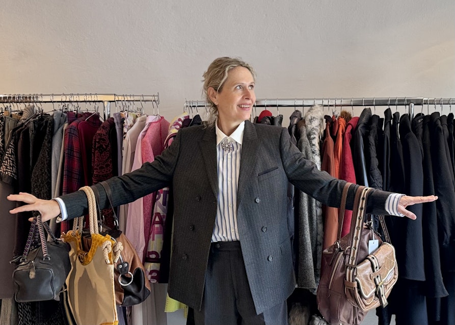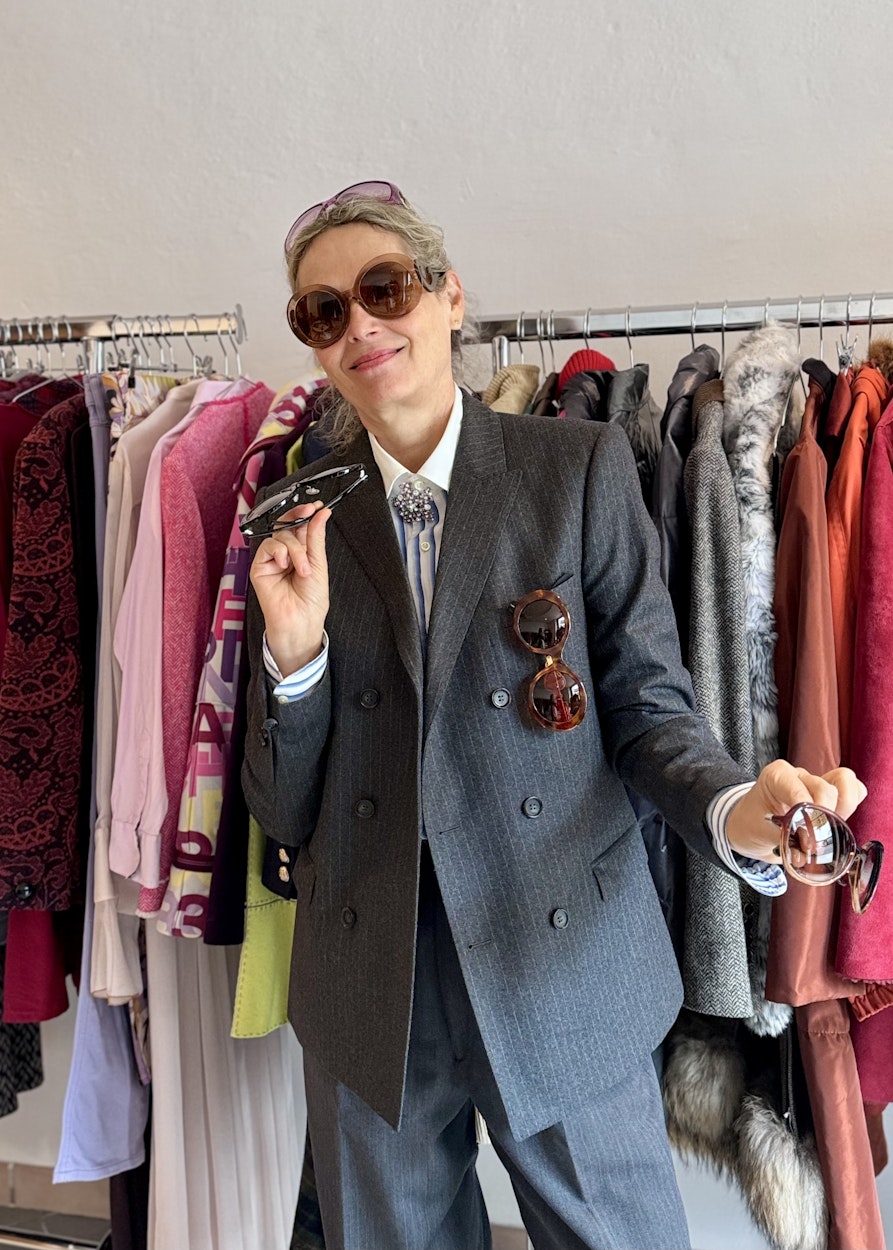 © Susanne Barta; Bluse, Blazer und Hose secondhand; fotografiert bei Pezzi di Perla