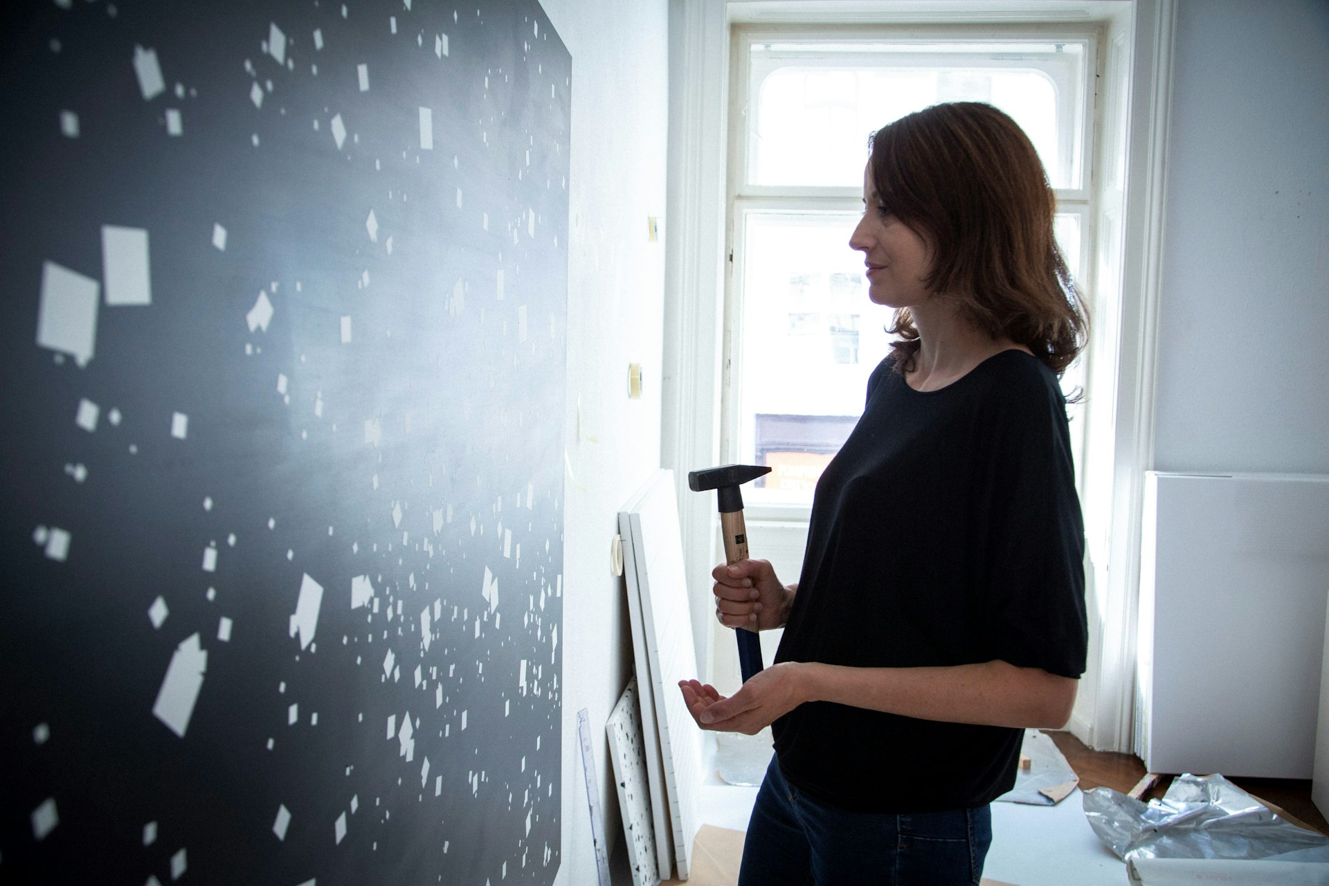 In ihren Arbeiten erkundet sie die Funktionsweise von Systemen mit deren eigenen Mitteln. Was sehr abstrakt klingt – und auf den ersten Blick auch so aussieht – ist im Grunde ein fast spielerischer Prozess, der zeigt, dass der Raum oder die Bildoberfläche nicht immer so klar definiert ist, wie man meinen könnte – egal ob es sich um ihre sogenannten Knitterskulpturen handelt, um Gemälde oder um Installationen, die oft auch ganze Fassaden oder mehrere Räume umfassen. Geometrische Muster in Schwarz-Weiß-Grau breiten sich aus, folgen scheinbar einem präzisen Rhythmus, bis sie von einem unerwarteten Element unterbrochen werden. Die Werke sind nicht nur ästhetisch eindrucksvoll, sondern werfen auch die Frage auf: Können Ordnung und Unordnung gleichzeitig existieren? Oder sind es nur zwei unterschiedliche Arten, dasselbe Muster zu betrachten? Aus einem Knick in der Linienführung, der von dem ursprünglichen Motiv abweicht, oder einem veränderten Abstand, kann sich eine neue Perspektive ergeben. Und wenn man sich auf das Spiel der Formen einlassen kann, ist man sich schon bald gar nicht mehr sicher, welches nun denn das ursprüngliche Motiv war.