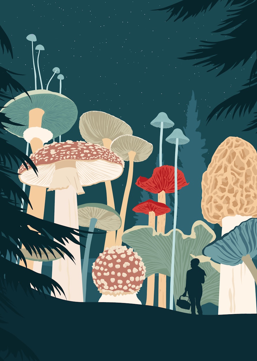 Nel tuo lavoro, quanto influisce la natura? Hai dei luoghi o ambienti specifici che ti ispirano maggiormente? Come micologa, hai scoperto un lato diverso della natura che prima non osservavi? Questo ha cambiato il tuo modo di illustrare?