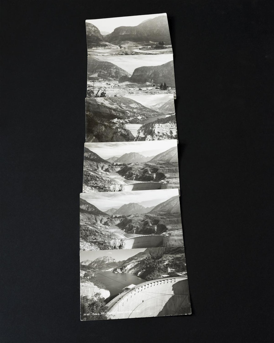 All'interno di "Calamita/à" ogni artista ha lavorato in direzioni molto specifiche e diverse. Il mio lavoro, intitolato "Crolla la diga, le voci si contraddicono", nasce dalla memoria dei racconti dei miei genitori: bambini all'epoca della catastrofe, abitavano in due comuni limitrofi uno a livello del Piave e l'altro a monte, e conservavano visioni e ricordi molto diversi della mattina del 10 ottobre 1963. Ho voluto creare un progetto che fosse un incrocio tra immagini realizzate nel paesaggio, giocando con il linguaggio fotografico di movimenti, rotazione, traslazione, avvicinamento e ripetizione, e un archivio "disobbediente" di materiali collezionati negli anni che parlano in maniera contraddittoria del Vajont.
