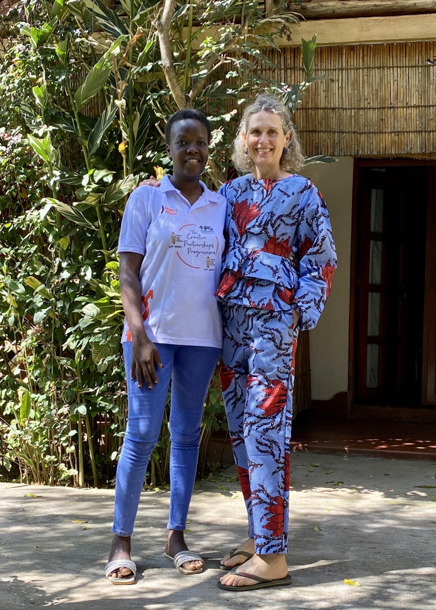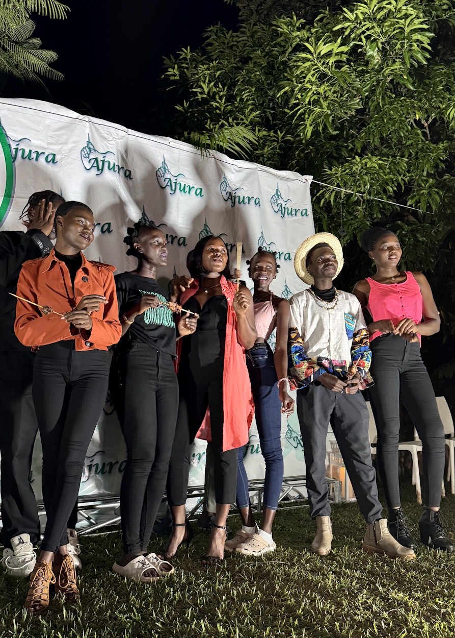 Fashion-Designerin wollte Sharon seit langem werden. Schritt für Schritt setzt sie ihren Traum um. Sie habe sich das Nähen selbst beigebracht und werde besser und besser, erzählt sie. Die meisten ihrer Stoffe färbt und bedruckt sie per Hand mit entsprechenden Pflanzen, Sharon arbeitet vor allem mit Rest- und Secondhandstoffen. Ihre Brand Ajura hat sie letztes Jahr gelauncht, Ajura sei ihr Spitzname, sagt Sharon lächelnd und bedeute u. a. „hard working“. Sharon ist ihr englischer Name, Anena ihr Acholi-Name, die Acholi People sind vor allem in Norduganda beheimatet. Bei der Geburt bekomme man beide Namen, erklärt sie.