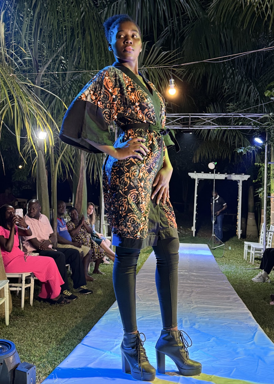 Der Tag ihrer Show ist gekommen. Sharon ist ein wenig aufgeregt, voller Vorfreude, viel ist noch bis zum Schluss zu erledigen. Sie hat einen besonderen Ort in Gulu ausgesucht, das Forrest Hill wurde erst vor kurzem eröffnet, der große Park, der die Anlage umgibt, ist etwas Neues für die Stadt. Ein afro-kanadischer Anwalt aus Gulu hat das Anwesen gekauft und möchte daraus einen Ort machen, der den Einwohner*innen zeigen soll, wie nachhaltig und schön Natur und Business zusammengehen können.