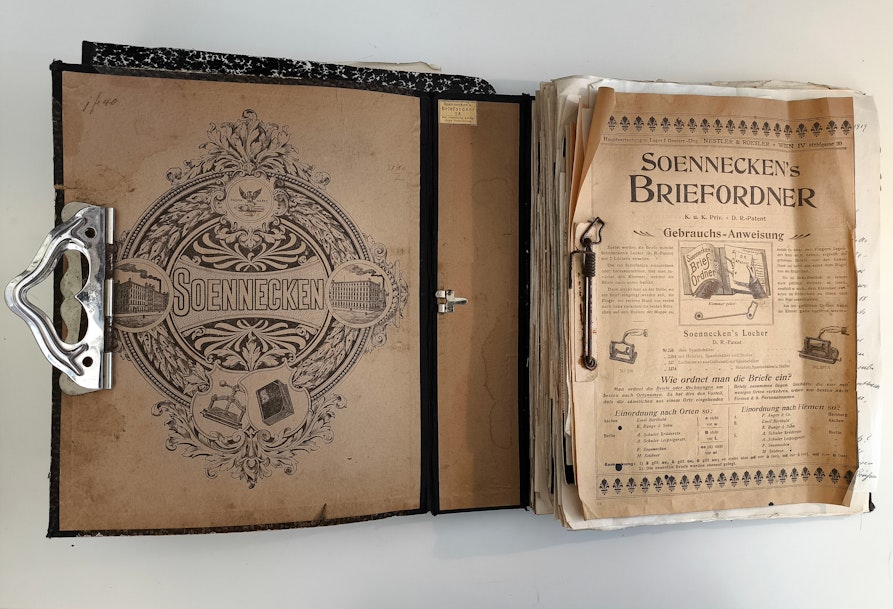 Beim ersten Durchblättern fallen mir sogleich die prachtvoll gestalteten Briefköpfe auf und die schwungvolle Handschrift der Absender*innen. Ein Weilchen dauert es, bis ich mich wieder an die Kurrentschrift gewöhnt habe, aber dann rieseln schon die ersten Inhalte auf mich ein. Jedes beschriebene Blatt Papier erzählt eine Geschichte, die nur darauf wartet, erforscht zu werden. So stoße ich zum Beispiel auf interessante Details zum Thema Ernährung im Hotel. Zahlreiche Werbeblätter, Rechnungen und Versandbestätigungen für Lebensmittel verraten, was im Posthotel zur Jahrhundertwende auf den Tisch kam und woher es stammte: von „unbegrenzt haltbarer“ Trockenmilch aus der „Spezerei und Kolonialwaren-Handlung Amort“ in Meran, über Bier aus der „Dampfbrauerei Vilpian der Gebrüder Schwarz“, bis hin zu Eingelegtem aus der Bozner „Aktien-Gesellschaft für Bereitung conservierter Früchte und Gemüse“, Piccolo Bretzeln aus der „Wiener Appetit Bretzel-Fabrik“ oder Franz Mervarts „Original böhmischem Saft- und Kurschinken“.