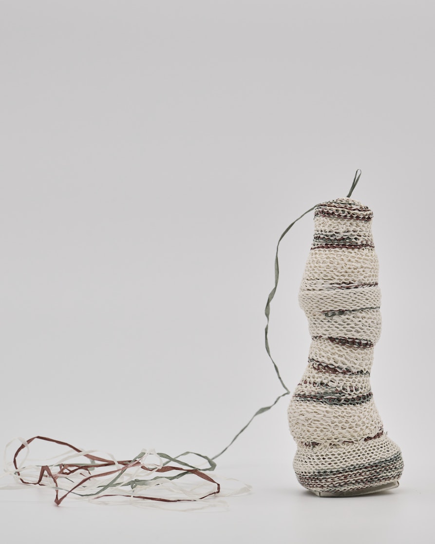 Anuschka presenta una serie di ampie opere bidimensionali su carta realizzate con fineliner, penna a sfera e matite colorate. I suoi dipinti sono lavori introspettivi, espressione di un sentire intimo, di gesti impalpabili e lievi, delicati e profondi. E il mio lavoro è in parte simile in questi aspetti, seppur con esiti differenti. Fin da ragazzina ho coltivato l’interesse e la curiosità verso alcune attività manuali basate sull’immediatezza e semplicità del gesto come il ricamo, la maglia e l’uncinetto. Attività tipicamente femminili, all’apparenza umili, ritenute spesso “minori” tra le arti, ma che attraverso i secoli hanno dato libero sfogo alla creatività di tantissime donne vissute in realtà e culture differenti. A me piace realizzare oggetti che mischino tecniche tradizionali e non, così come combinare trame e texure differenti, sperimentando nuovi modi di praticare l’uncinetto, la maglia e il ricamo. Negli anni ho anche sempre raccolto e collezionato materiali di varia provenienza che poi mixo, come lane, seta, ricami, pizzi, passamanerie, filati antichi di metallo, fili mizuhiki di carta dal Giappone ecc.. Realizzo i miei oggetti con una pratica lenta ed intensiva, con una gestualità spontanea, fluida e reiterata, finché raggiungo la forma espressiva cercata.