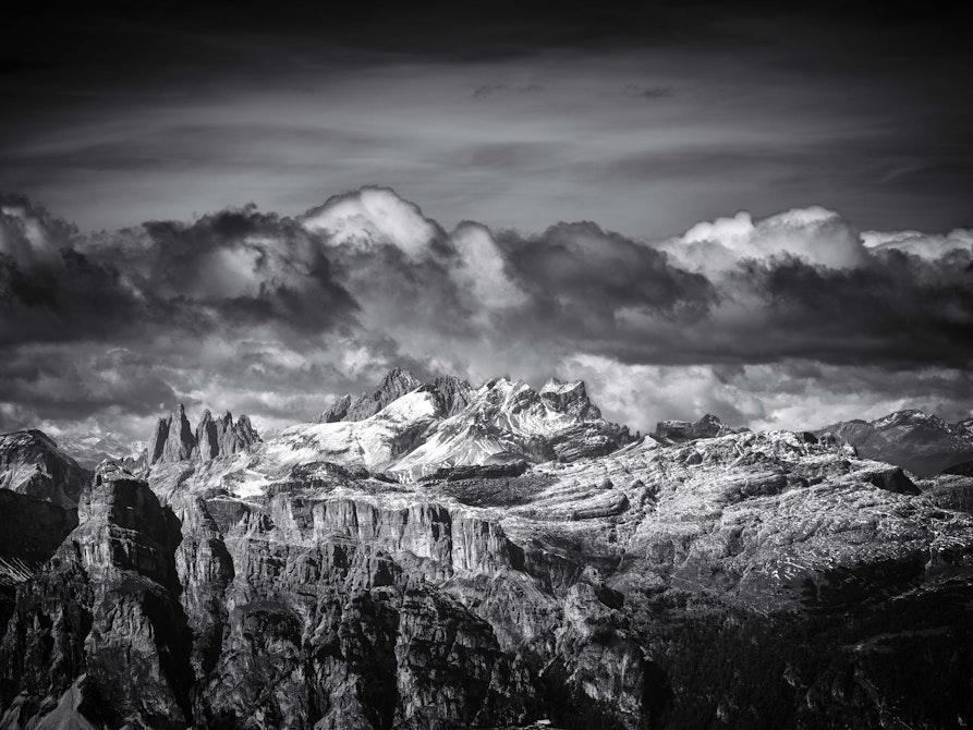 È difficile selezionare due soli scatti, perché ogni immagine del mio libro “Le Dolomiti” racchiude in sé i propri estremi. Ogni foto è stata selezionata tra migliaia e racconta una storia di luci, ombre e dell’incontenibile forza della natura. È difficile indicare un contrasto chiaro, perché l’intera collezione è un’espressione di questi estremi.