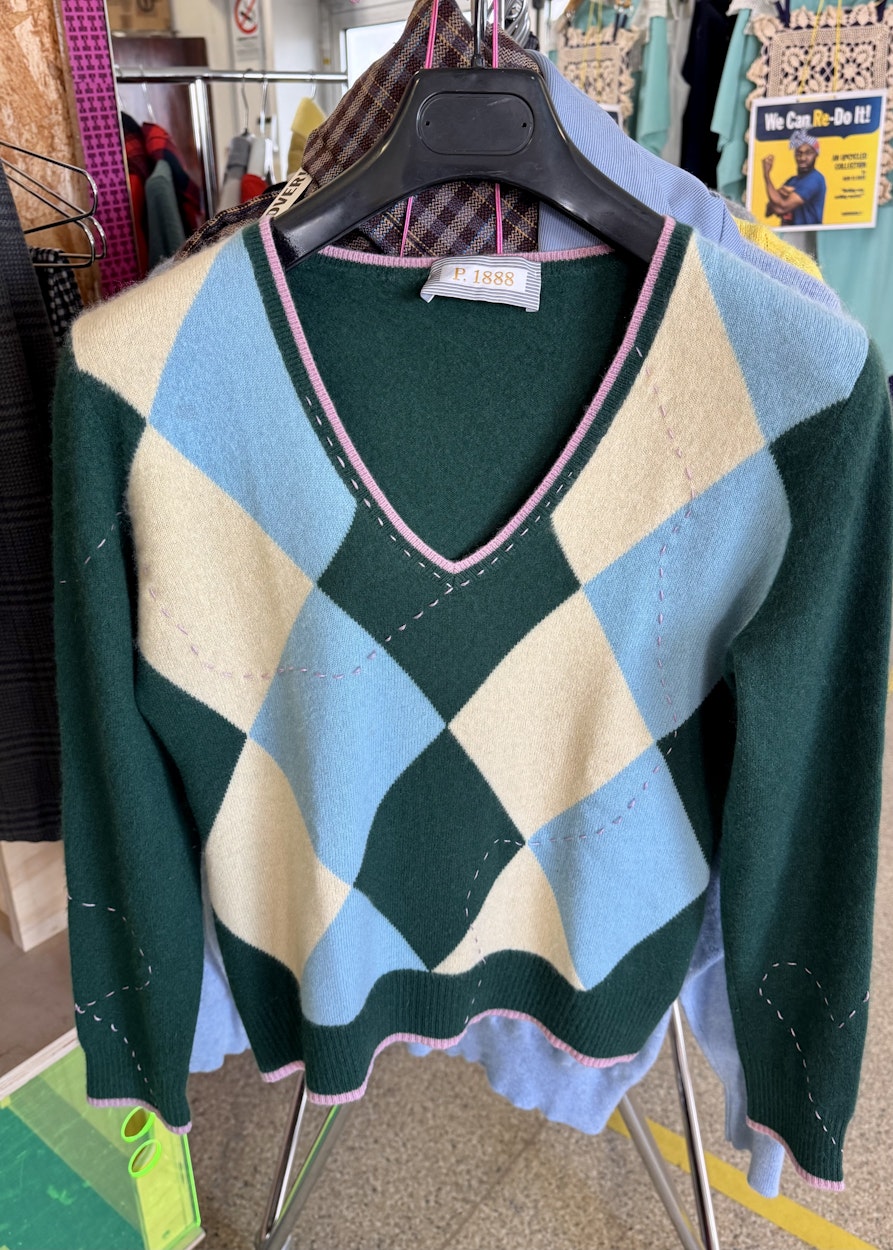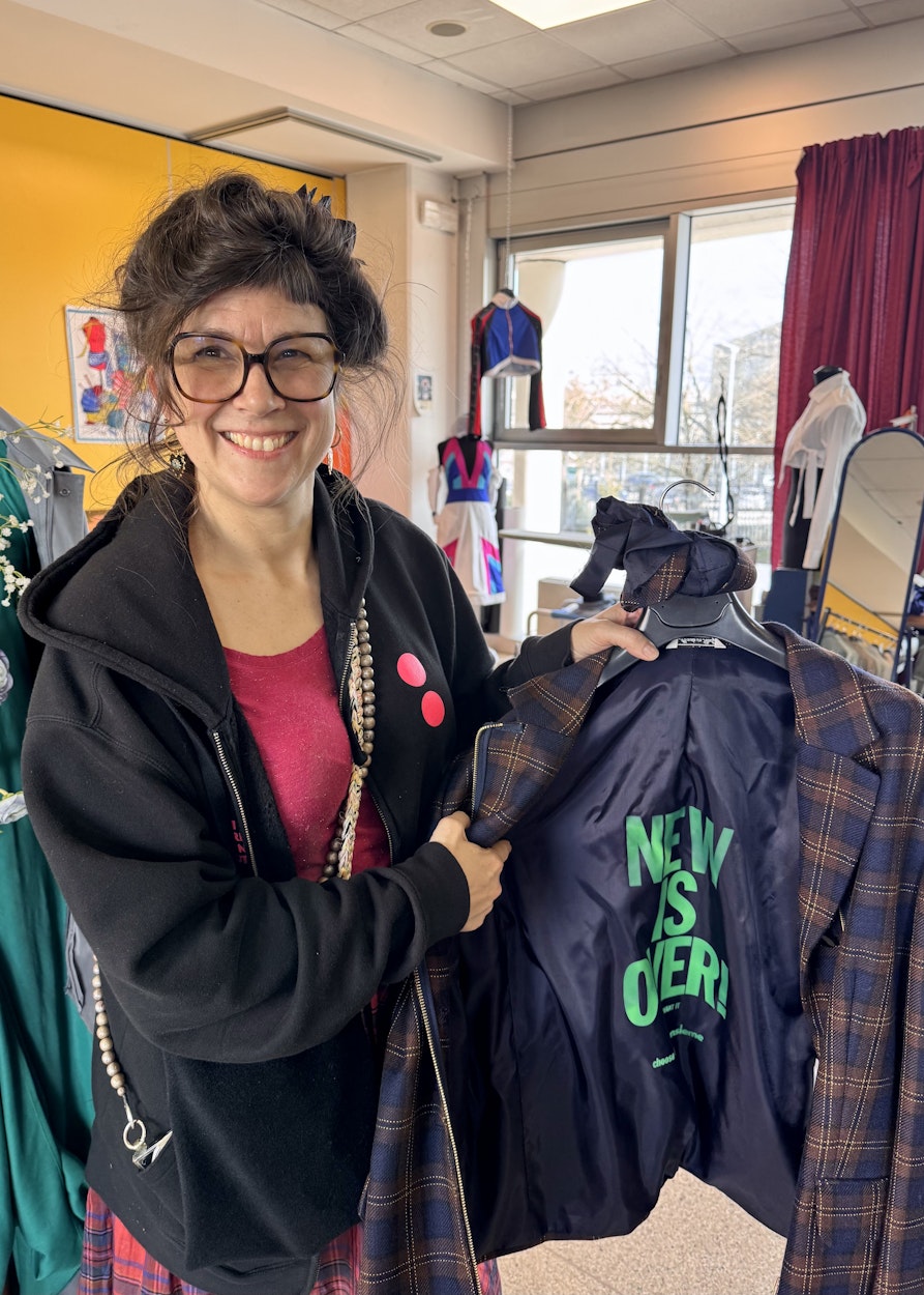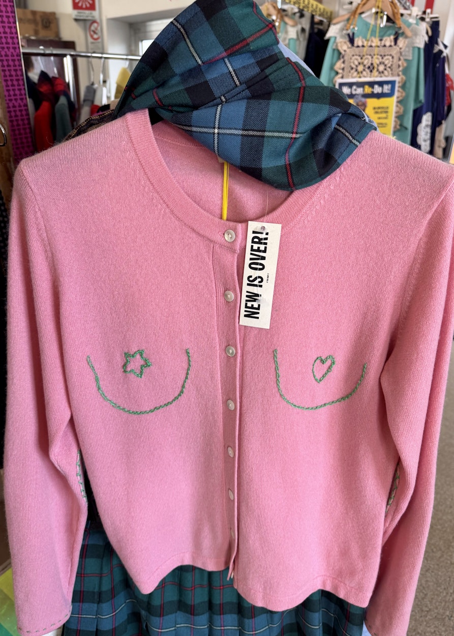 Genau. Auch um junge Leute anzusprechen. Das soll sich auch in den Designs widerspiegeln. Das Konzept kommt gut an, aber es ist nicht einfach, die Stücke zu vertreiben, und all das, was dahintersteckt, zu erklären. Viele, die in unseren Secondhand-Läden einkaufen, haben nicht die Kaufkraft, ein aufwendig abgeändertes Kleidungsstück zu erwerben. Daher versuche ich einen Mittelweg zu finden und auch einfache Stücke zu machen, wie T-Shirts mit Aufdruck oder gekürzte Schottenröcke. Das kommt gut an.