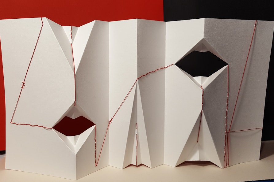 Ein roter Faden zieht sich durch Eleonora Cumers Kunstwerke, läuft über wortlose Seiten, vorbei an bedruckten Kartonkulissen, schlängelt sich durch Papierfalten und Oberflächen in verschiedenen Farbtönen, die ineinandergreifen, sich überlappen, einander überholen. Saubere Schnitte und grob gerissene Kanten verbergen Räume, die sich Stücke für Stück ent-falten und eine Narration von erstaunlicher Tiefe kreieren. Die Künstlerin braucht gar keine Worte, um zu erzählen. Ihre bunten Kreationen – Künstlerinbücher, dreidimensionale Strukturen aus Papier oder Stoff – erscheinen dicht und vielschichtig, aber dennoch verspielt. Und wenn man sich auf sie einlässt, bieten sie völlig neue Möglichkeiten, unser Umfeld, aber auch unser eigenes Innenleben zu betrachten.