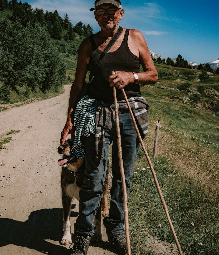 Volevo raccontare l'attitudine delle persone che vivono in montagna, sopra i 1.500 metri: una quota che mi sono dato perché casa mia è a 1.495 metri. Quello che mi piace delle persone che vivono in montagna è questa ruvidità, quella sana riservatezza che fa sì che per conoscerle devi entrare in confidenza, costruire un legame. Sono rapporti fortissimi, indissolubili. Tutto è partito con uno scatto chiave a Rino Barrella: stavo facendo una camminata verso una diga e ho incontrato questo pastore dalla pelle del viso che pareva cuoio, in canotta, con un cappellino nero “valle del Cervino”, che camminava con due bastoni, un cane e un centinaio di vacche. Nonostante le anche usurate, aveva una felicità negli occhi incredibile: era al settimo cielo per poter fare la fontina con il latte delle sue mucche alimentate a erba grassa. Così ho cominciato a raccontare questa realtà. Il progetto non si esaurisce con le persone che vivono in pianta stabile in montagna, ma è fatto di un'attitudine: quella di persone che, quando sorpassano quei 1.500 metri di quota, cambiano un pochino. Come me.