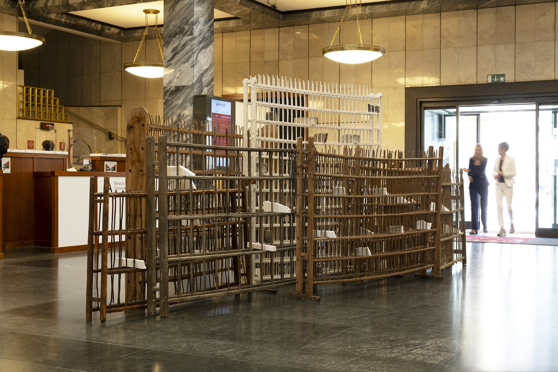 Sieht man die Hurten in der Ausstellung, fällt auf, dass in deren Fächern ein Stück Marmor steckt. Mit dem Marmor gepaart werden sie zum Kunstwerk. Das hat zum einen mit seinem künstlerischen Werdegang zu tun: Ariel hat die Kunstschule in Gröden besucht und dort vorwiegend mit Holz gearbeitet. Er war aber auch Schüler der Berufsfachschule für Steinbearbeitung in Laas, wo er viel über Marmor lernte. So kommen wir wieder zur Frage zurück: Was bleibt? Für ihn begann somit die konstante Suche nach einer Kombination dieser zwei Materialien. Warum also genau diese beiden miteinander verbinden? Die Hurte repräsentiert das tägliche Brot der Bauern, von dem sie lebten. Jedes Fach der Hurte war ein Tag und jeder Tag hatte sein Brot. Mit der Zeit wurde das Brot hart, aber trotzdem zu Knödeln weiterverarbeitet oder für Suppen verwendet. Zudem hat sich während der Zeit des Habsburger Reiches daraus ein Wirtschaftszweig entwickelt: Südtirol war die Kornkammer Tirols, es wurde viel Roggen angebaut und nach Tirol exportiert. Es war also ein wichtiger wirtschaftlicher Faktor und lebensnotwendig zugleich. Interessant wird dann die Kombination mit dem Marmor: Die Hurten waren etwas Bäuerliches und Lebensnotwendiges, brachten aber zugleich einen wirtschaftlichen Faktor mit sich. Marmor hingegen war eher etwas Edles, das auch viel Arbeitsplätze schuf, zudem ein gewisses Statussymbol des Habsburger Reiches war, und mittlerweile auf der ganzen Welt exportiert wird. Ariel mischt diese beiden Komponenten und kommt zur Frage: Was bleibt von dieser alten Tradition? Von der Struktur der Hurte bleibt nur mehr eine Erinnerung, an diese ausgestorbene Anbautradition. Vielleicht sieht man sie ab und zu noch auf alten Bauernhöfen und fragt sich, was dieses mysteriöse Ding da wohl sei? Das ist es, was geblieben ist aus dieser doch so prägenden Zeit des Roggenanbaus, welcher über Jahrhunderte so praktiziert wurde. Ein Stück Marmor hingegen ist das, was von einem Marmorblock bleibt, der z. B. nach New York verschifft wird. Ein Stück, ausgegraben von über 2.000 Metern Berg. Ein Stück eines eine Millionen Jahre alten Steins. Irgendwie ist diese Ausstellung also ein Weiterlebenlassen dieser Objekte aus alten Zeiten. Ariel beschreibt es als Zeitbank: Millionen Jahre altes Gestein, unser Boden, welcher in dieser vergessenen Konstruktion der Hurte liegt. Die Hurte ist also die Bank und jedes Stück Marmor hat sein eigenes Fach darin. Eine visuelle Erzählung dieser Region oder unserer Gesellschaft.