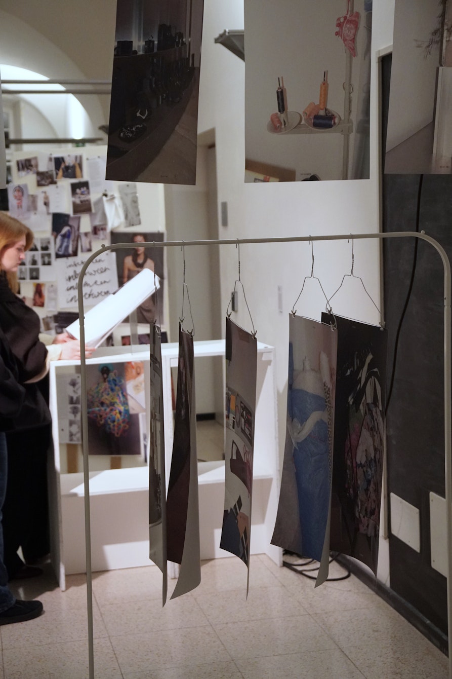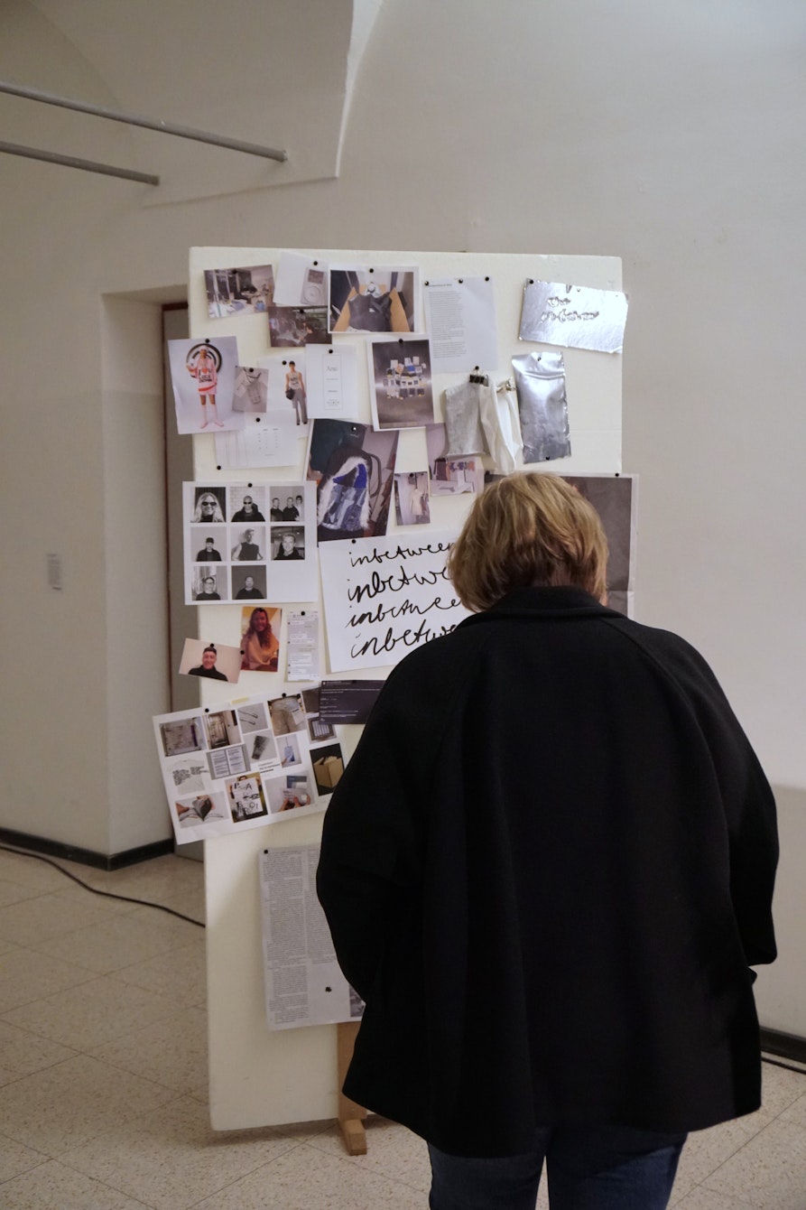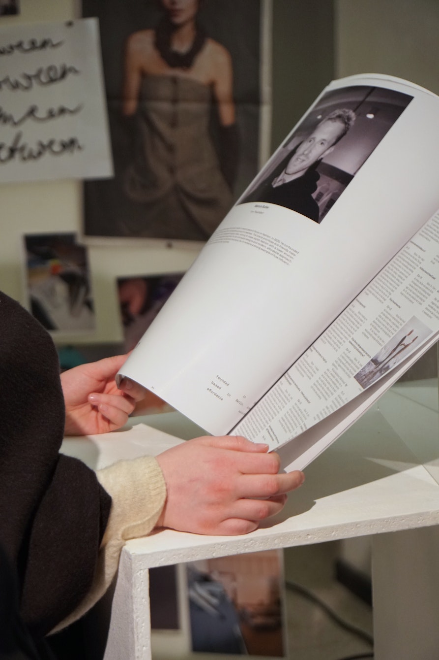 Für Inbetween – In Conversation with Brands beschäftigte sich Antonia Werkmüller mit der Frage, wie Modemarken ihre Identität formen und somit mit ihrer Zielgruppe in Verbindung treten. Neben der Dokumentation ihrer Recherche ist ein Buch ausgestellt, welches eine Reihe von Interviews mit kreativen Köpfen der Modeszene über die Herausforderungen und Prinzipien der Langlebigkeit von Modemarken beinhaltet.