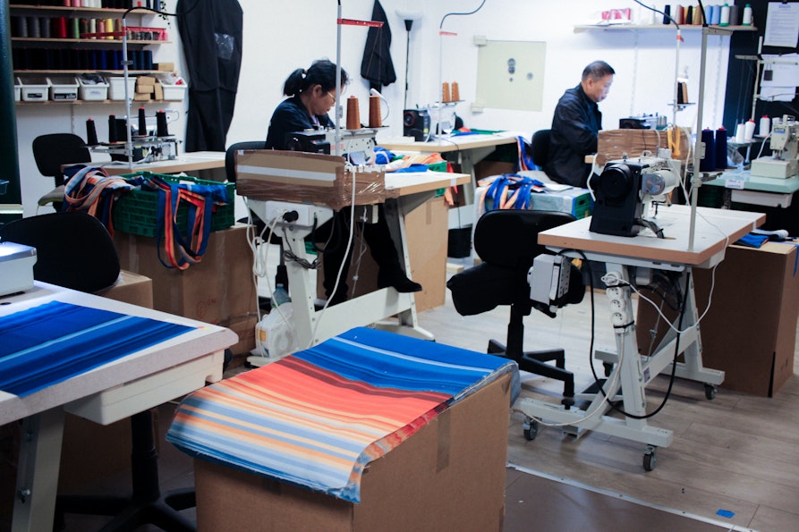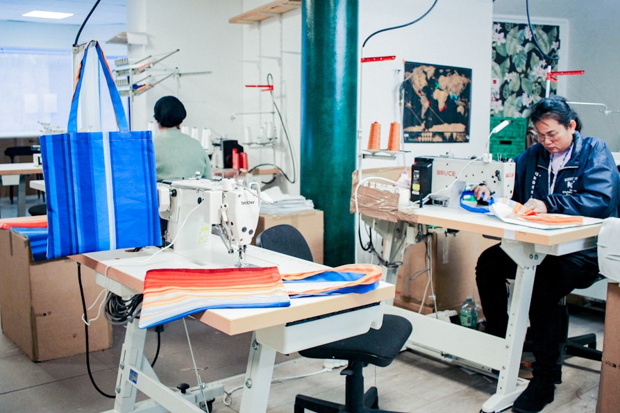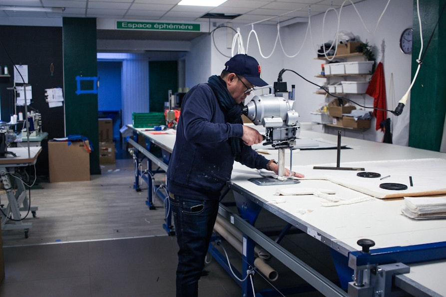 Zur eigenen Produktion gehört auch die eigene Creative Factory in der französischen Industriestadt Roubaix. Mit drei lokalen Arbeiter:innen entstehen dort unter Wiederverwendung ausgedienter Materialien diverse Bekleidungs- und Accessoireskollektionen, Objektserien und textile Kunstwerke, die damit Alternativen zu Fast Fashion schaffen. In ihrer Fabrik ermöglichen sie jedoch auch anderen europäischen Unternehmen die Produktion von Kleidung, Accessoires, Innenausstattung und Bühnenbildern mit wiederverwendeten Restbeständen und verantwortungsbewussten Methoden.