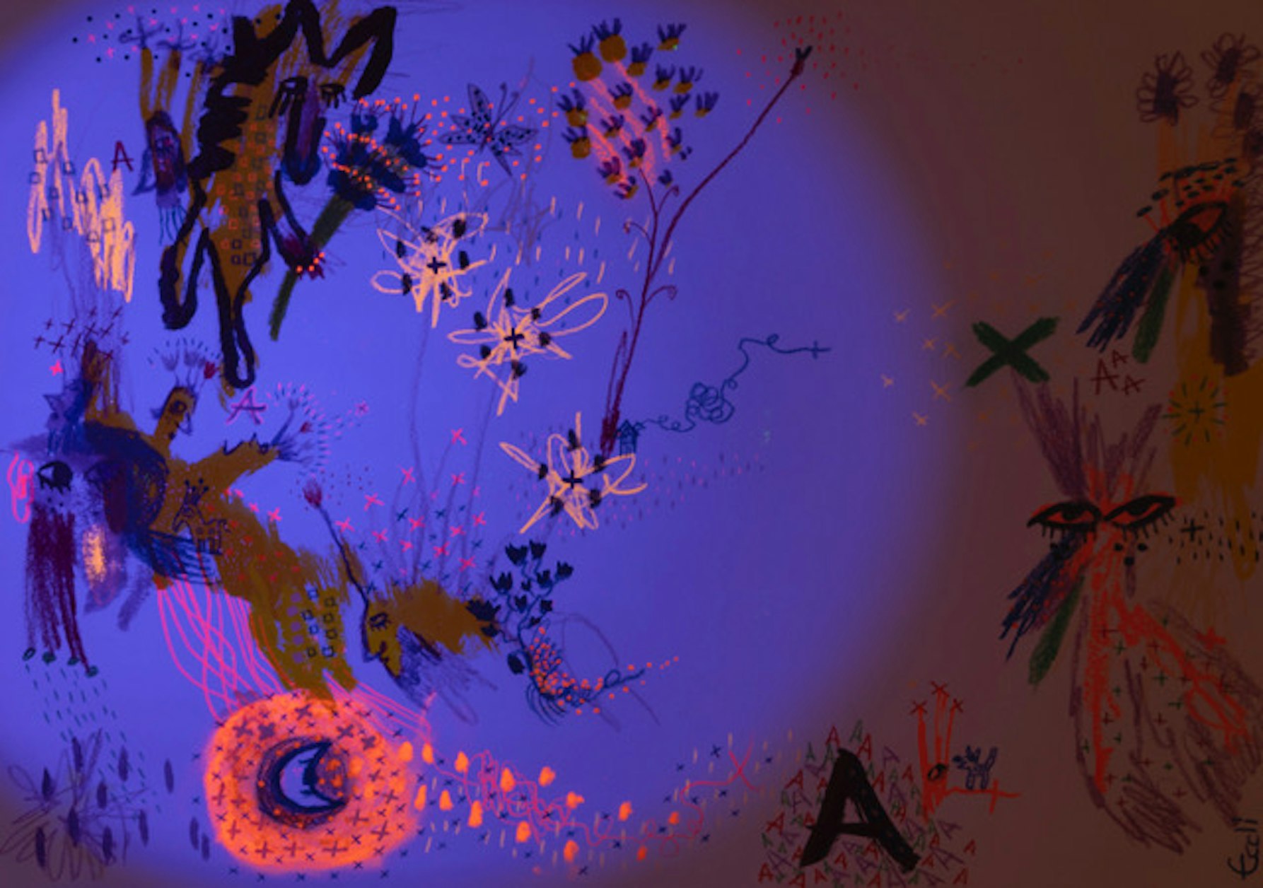 Una delle parole che cerco di evocare attraverso la mia arte è meraviglia. È quella sensazione che ad esempio scaturisce quando, osservando con una luce UV, ci accorgiamo che c’è un mondo nascosto agli occhi, un universo invisibile che si svela davanti a noi, come un segreto che aspetta di essere scoperto. È la stessa scoperta che i bambini vivono quotidianamente, quando si trovano di fronte a qualcosa di nuovo, in un continuo stupore. Il mio desiderio è che questa meraviglia possa risvegliare negli adulti una parte di loro che forse hanno dimenticato, riportandoli a una connessione più profonda con l’infanzia, dove ogni cosa era un mistero da esplorare, un’incanto da vivere senza limiti.
