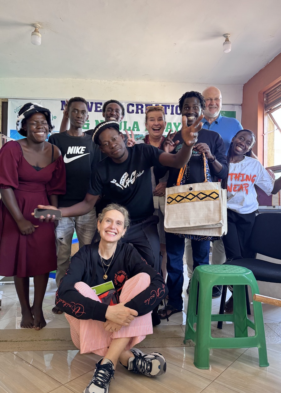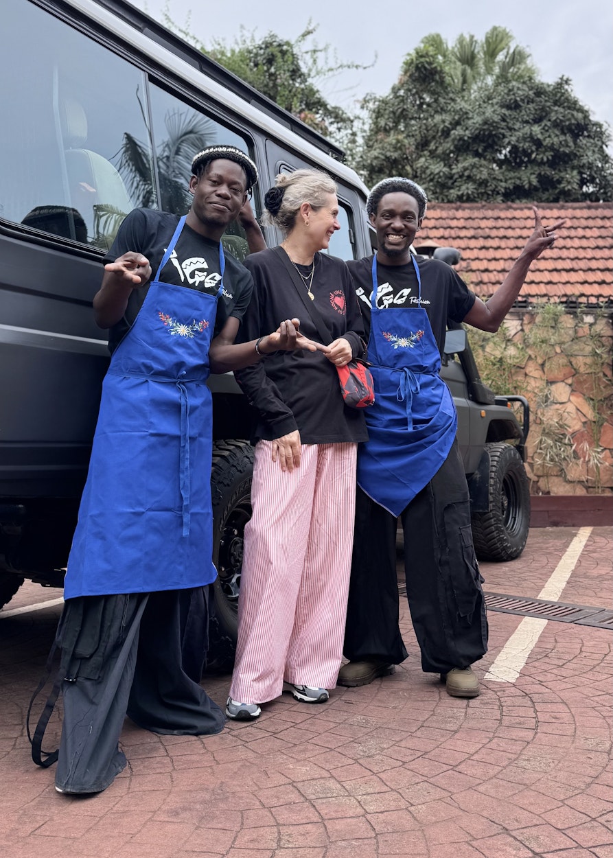 Wie die ein oder andere weiß, waren mein Mann und ich im Dezember 2024 in Uganda. Dort haben sich einige interessante Slow-Fashion-Begegnungen ergeben, unter anderem haben wir Saul kennengelernt. Seine Eltern schickten ihn mit zehn Jahren von zuhause fort, er war auf der Straße. Saul hat das überstanden. Unter anderem dadurch, dass ihn Godfrey Katende, der sich damals noch ganz dem Breakdance widmete, aufnahm, ihm das Tanzen beibrachte und ihn auch in seine späteren Geschäftsaktivitäten als Designer und Koordinator von Fashion Revolution Uganda miteinbezog. Saul macht heute u. a. Social Media für Godfreys Designlabel und engagiert sich für Street Kids in Kampala, er arbeitet mit ihnen, macht Projekte und bringt ihnen das Tanzen bei. Wir waren einen ganzen Tag mit Godfrey und Saul unterwegs und haben lokale Slow-Fashion-Projekte besucht.