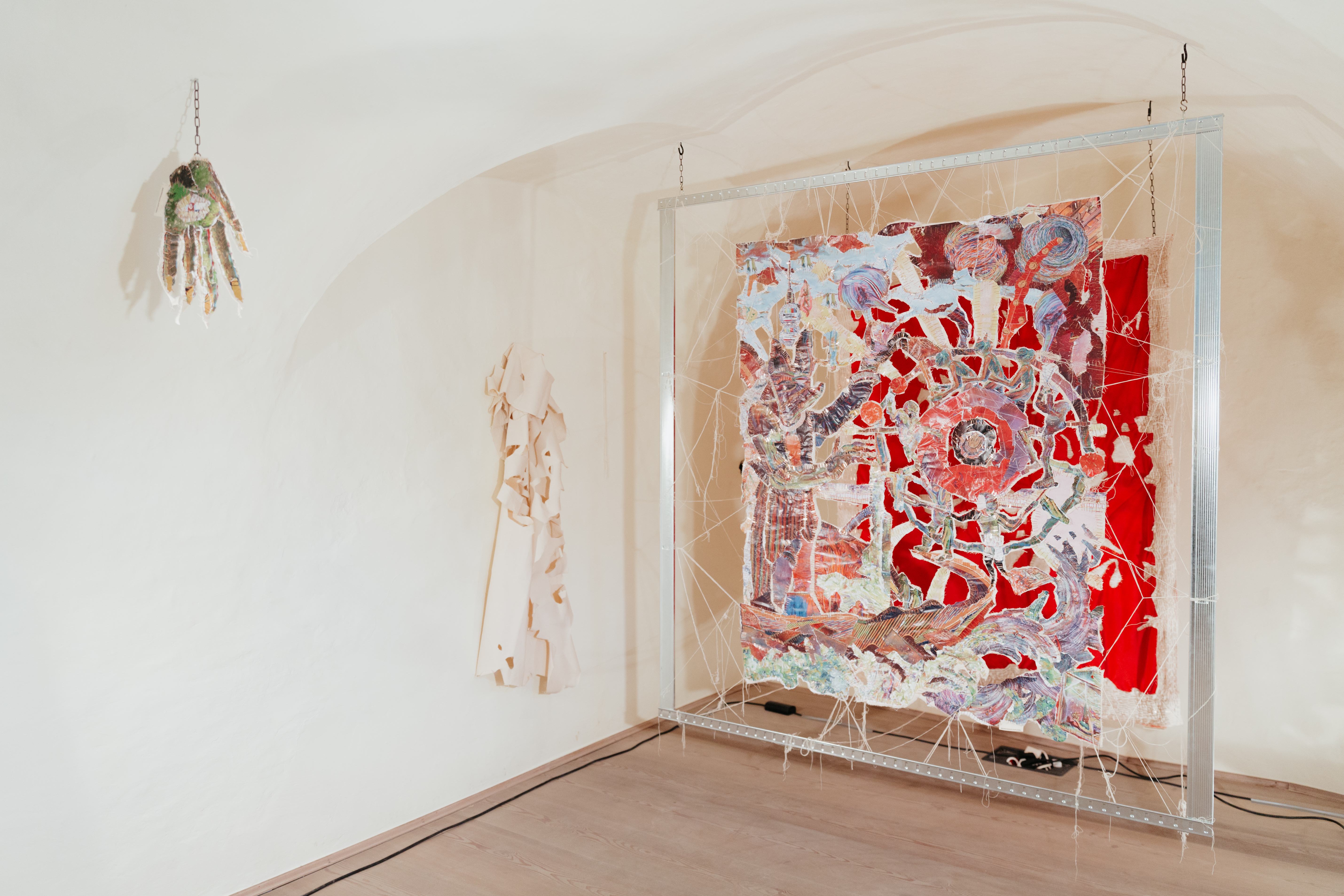 Es ist die erste Einzelausstellung des italienisch-tschechisch-österreichischen Kunstkollektivs Brenner-Havelka-Plessl. Schon der Titel verweist auf die Ambivalenz, die sich durch die Schau zieht: zwischen Verletzlichkeit und Widerstand, Fragmentierung und Neuordnung. In einem Raum, der einst der Isolation diente, öffnen drei Künstler intime Einblicke in kollektive und persönliche Prozesse psychischer Transformation.