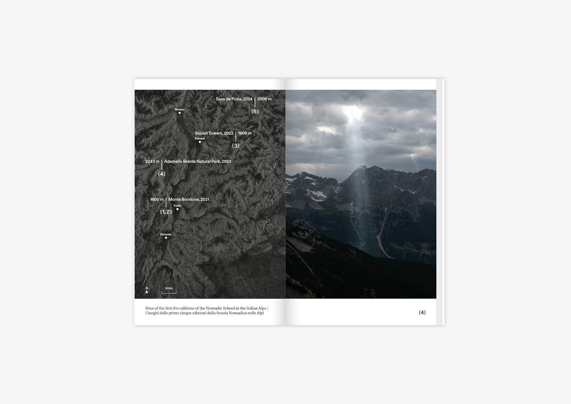 Come si racconta un progetto che nasce ogni anno, in un altrove alpino che muta con le stagioni, con le nuvole, con le domande? Come si fissa sulla carta ciò che per sua natura è mobile, flessibile, in ascolto del contesto? A Nomadic Book, realizzato grazie al sostegno della Direzione Generale Creatività Contemporanea del Ministero della Cultura nell’ambito del programma Italian Council, edito da bruno e curato da Filippo Andreatta e Sarah Messerschmidt, è una possibile risposta. Un archivio vivo, una mappa teorico-pratica che raccoglie i primi cinque anni di vita della Scuola Nomadica, il progetto di pedagogia sperimentale performativa ideato da OHT (Office for a Human Theatre), che ogni estate prende forma tra le montagne del Trentino-Alto Adige/Südtirol.