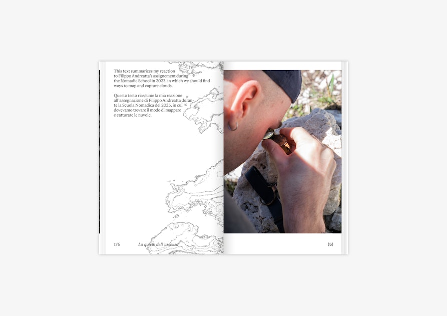 Il volume A Nomadic Book non è una semplice raccolta di testi che raccontano l’esperienza di mentor e partecipanti all’interno della scuola: è un organismo complesso che riflette il metodo della scuola. Al suo interno convivono riflessioni, immagini, esperienze, tracce di dialoghi, interventi teorici e poetici firmati da autrici e autori come Lucia Pietroiusti, Annibale Salsa, Rosario Talevi, Enrico Malatesta, Dehlia Hannah, Victoria Bjork, Annamaria Ajmone, tra gli altri. Le voci si moltiplicano e si sovrappongono in un coro polifonico che restituisce la ricchezza di un’esperienza fondata sull’intersezione e sulla contaminazione.