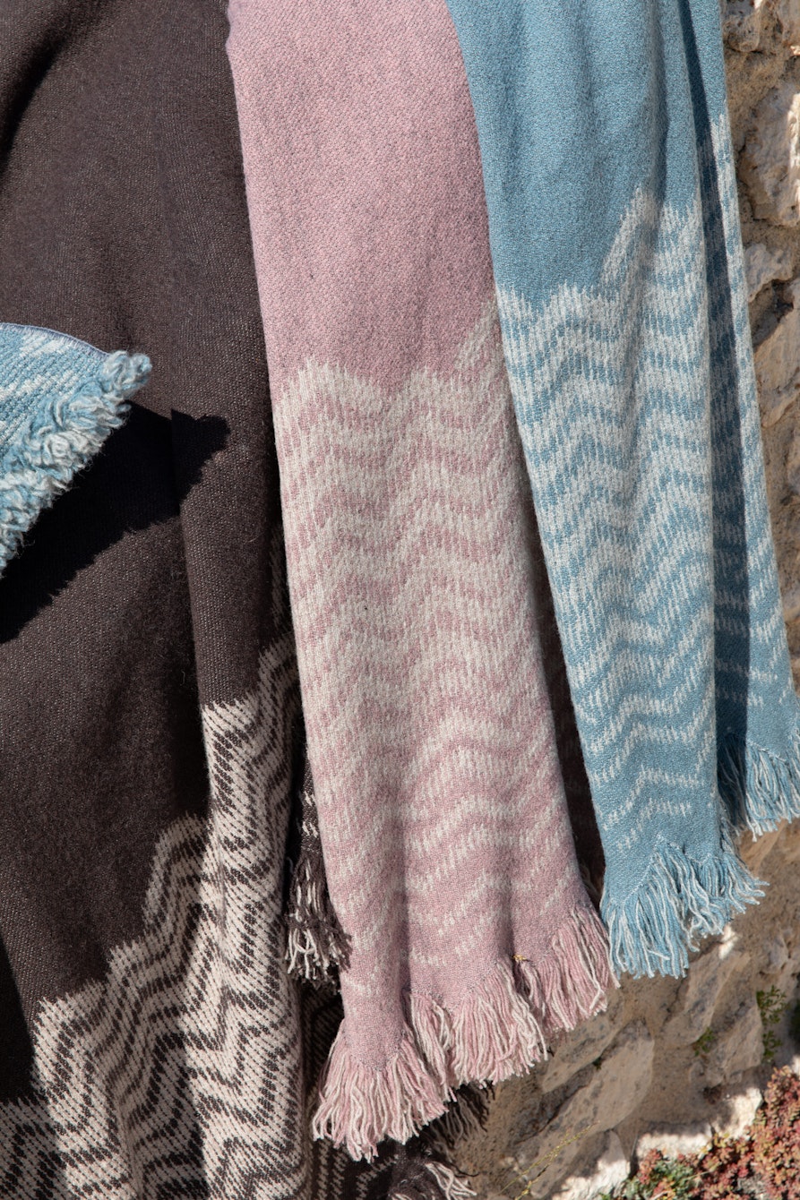L’Arcolaio presenta una serie di plaid in lana: le collezioni Chevron e Stratos, realizzate con filati pregiati, lavorate con tecniche antiche ma dall'estetica contemporanea e anche dei runner in lino stampato, le collezioni Lunaria Cipressi e Lunaria Papavero.