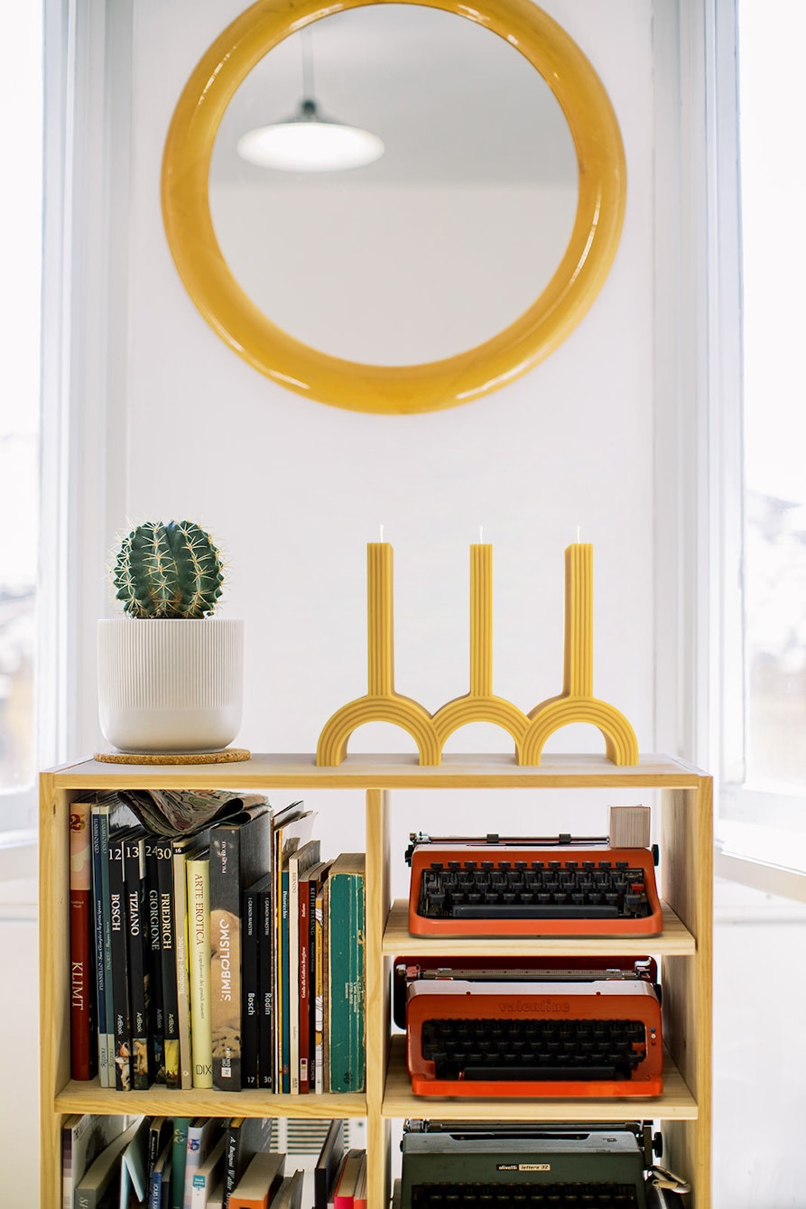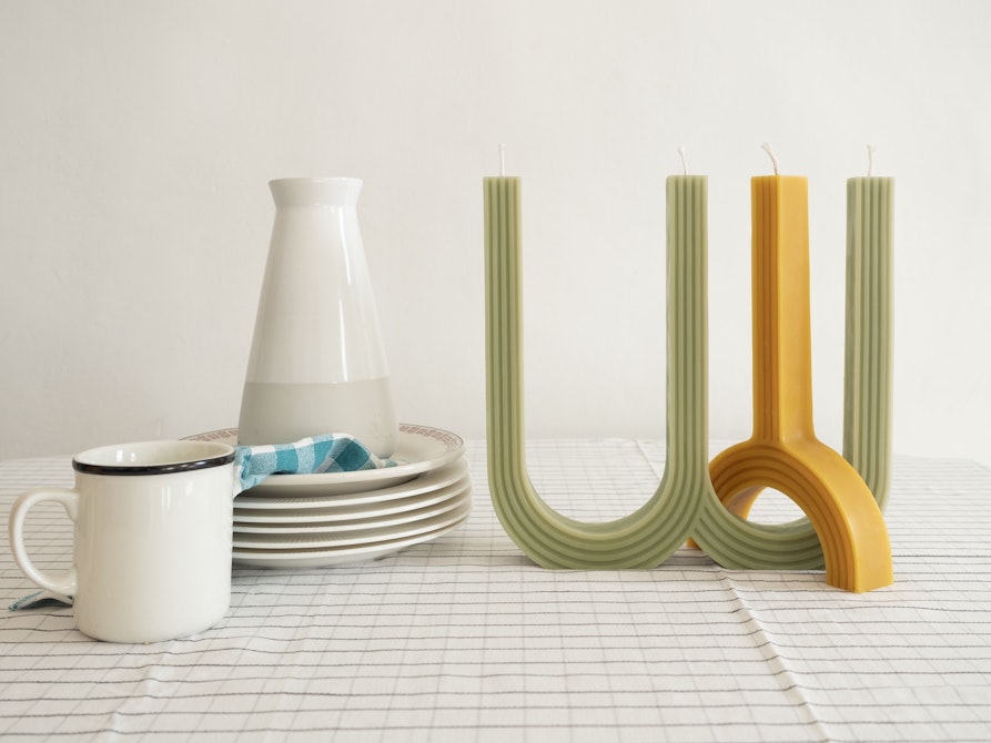TRAMA porta al chiosco Kandela: una collezione di candele modulari in cera d’api, lavorate artigianalmente con criteri eco-sostenibili. La linea Kandela nasce da uno studio sulla candela comune e sul simbolismo legato al numero di fiamme accese. L’oggetto mette in discussione il classico rapporto tra candela e porta-candela, introducendo il concetto di modularità, approdando a forme nuove, scultoree, tratte da elementi geometrici ripetuti, come la curva e la linea verticale e che richiamano elementi architettonici come l’arco e la colonna. TRAMA è un brand di design e una rete multidisciplinare di professionisti nel campo della ricerca e del design. Il progetto è stato avviato da Tramastudio, fondato nel 2020 dalle designer Francesca e Manuela Pucciarini, il cui lavoro si concentra sulle connessioni tra design e artigianato, combinando riferimenti del passato e nuove tendenze, processi artigianali e tecnologie innovative.