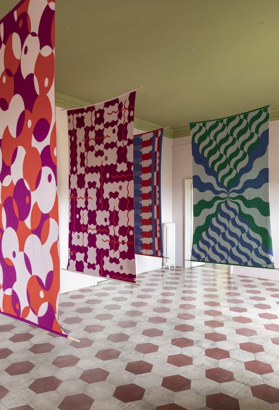 LANIFICIO LEO porta al chiosco dei plaid/arazzi delle designer Serena Confalonieri e Hanna Werning, ispirati a diverse suggestioni visive e sensoriali. La collezione PANORAMICA in maglia jaquard, di Serena Confalonieri, si ispira a ricordi e sensazioni legate al territorio che ospita il Lanificio, con più soggetti: quattro cartoline spedite nel mondo come souvenir di una vacanza. TRIP, sempre di Serena Confalonieri, è il nome di una collezione di plaid-arazzi che reinterpreta le visioni di Aldous Huxley e le alterazioni percettive di natura psichedelica, tra geometrie, colori vivaci e forme sinuose. La collezione ZING di Hanna Werning si ispira alla vista che si apre da una finestra di un appartamento di Stoccolma.