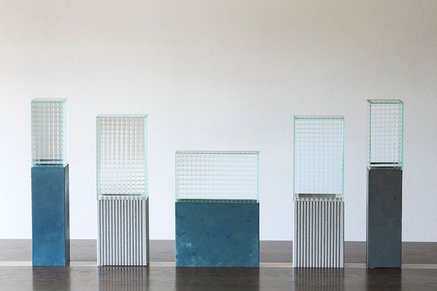 Altri oggetti a cavallo tra design, arte e funzione sono Code A, B, C di Barbara Schweizer Edizioni. La collezione presenta un serie di parallelepipedi in cemento e vetro che sembrano evocare lo skyline di una città immaginaria: le metropoli di Fritz Lang, le città invisibili di Italo Calvino o le città sognate da Marco Polo, ma anche città possibili e reali. Ognuno dei parallelepipedi, una volta scomposto, si trasforma in due vasi.